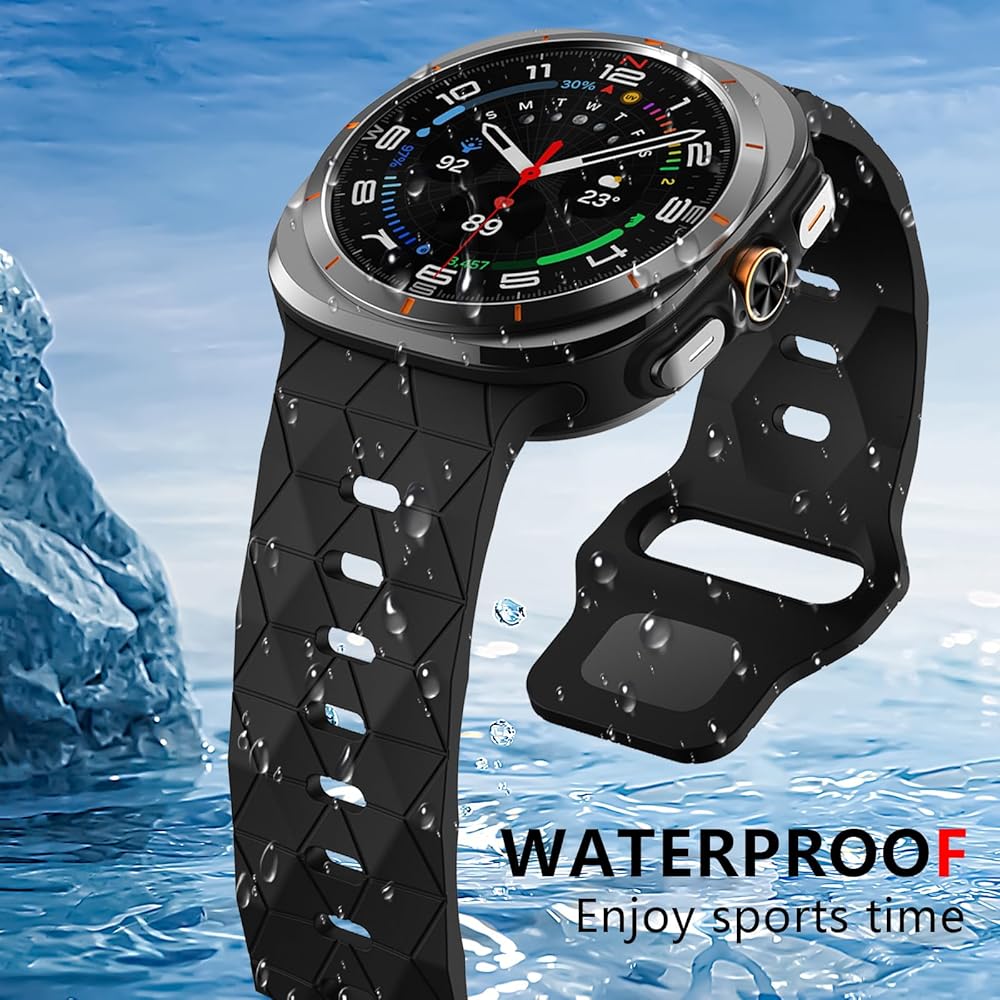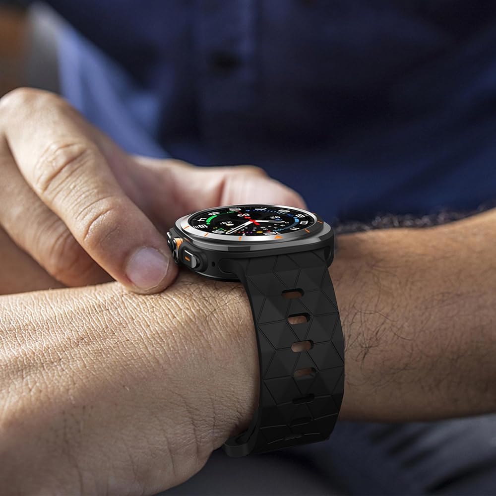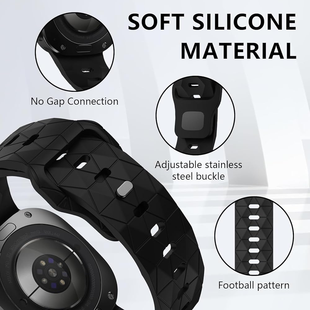 【Unique design】: Samsung ultra strap adopts the new football pattern design, which is simple and fashionable. The unique wavy texture and the exquisite metal plated black buckle combine to add endless charm to your watch. The gapless strap uses a new curved edge, which is completely suitable for your Samsung ultra strap and makes your watch fit your skin better.