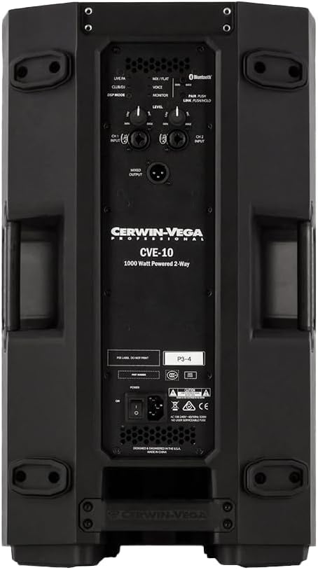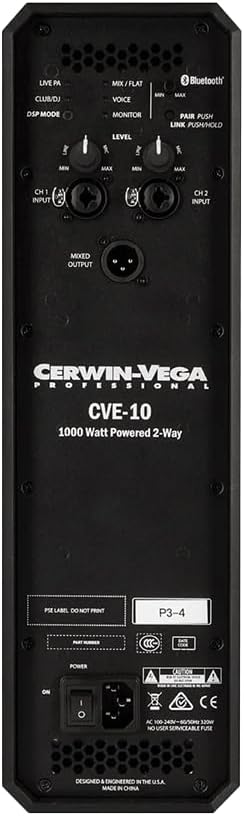 The Cerwin Vega CVE-15 powered Loudspeaker features 1000 watts of Class D Power, a 15" woofer and a 1" exit high frequency compression driver. Besides the 2 Combo XLR/TRS Inputs and one XLR output, there are 5 easy-to-use DSP driven Modes to tailor your sound. In addition each CVE speaker allows audio streaming via Bluetooth from any smartphone or tablet, mono or even stereo paired. The lightweight polymer enclosure design combined with 128dB of headroom, makes the CVE-15 the ideal solution for live applications, mobile DJs, houses of worship, clubs, restaurants, conference rooms, and more. Listen for yourself to Cerwin Vega s 65 years of experience.
