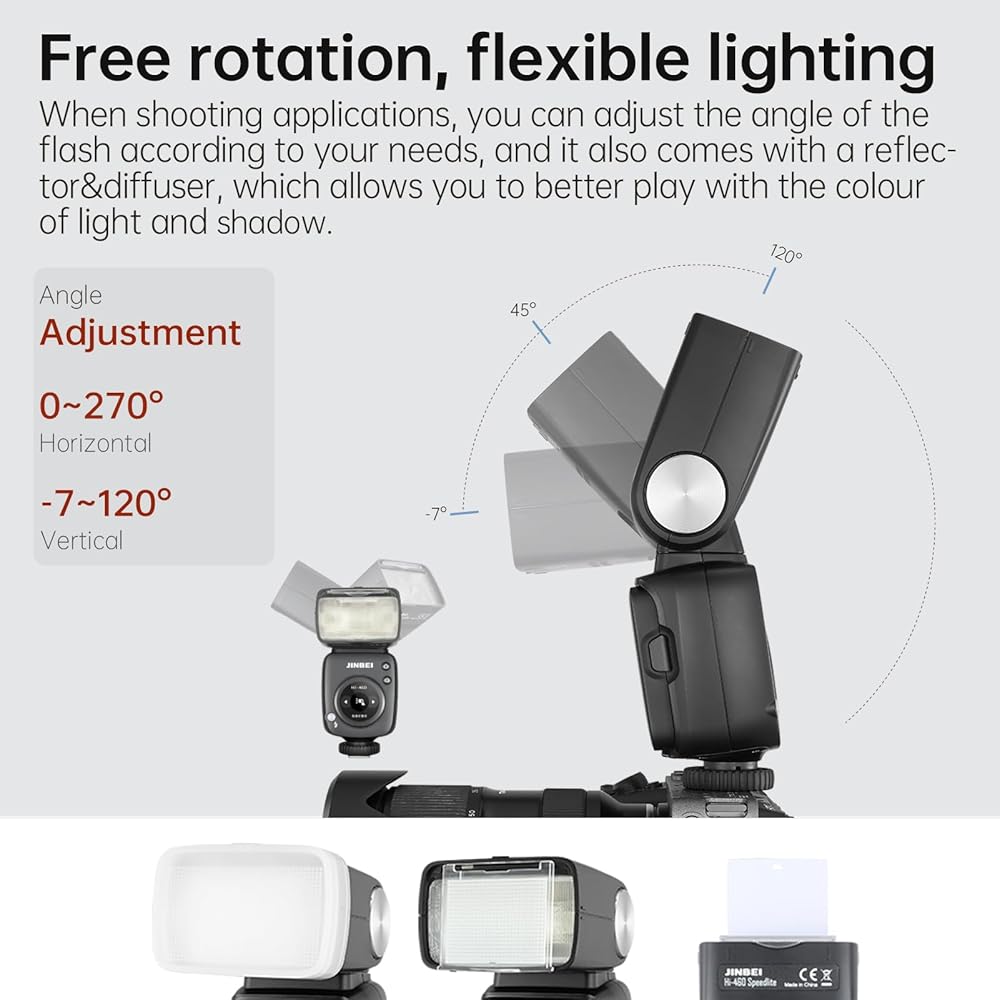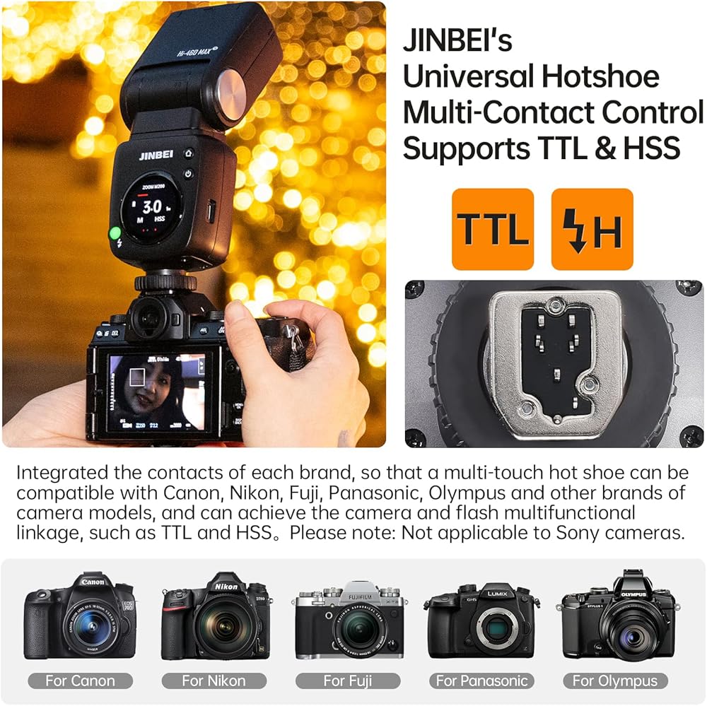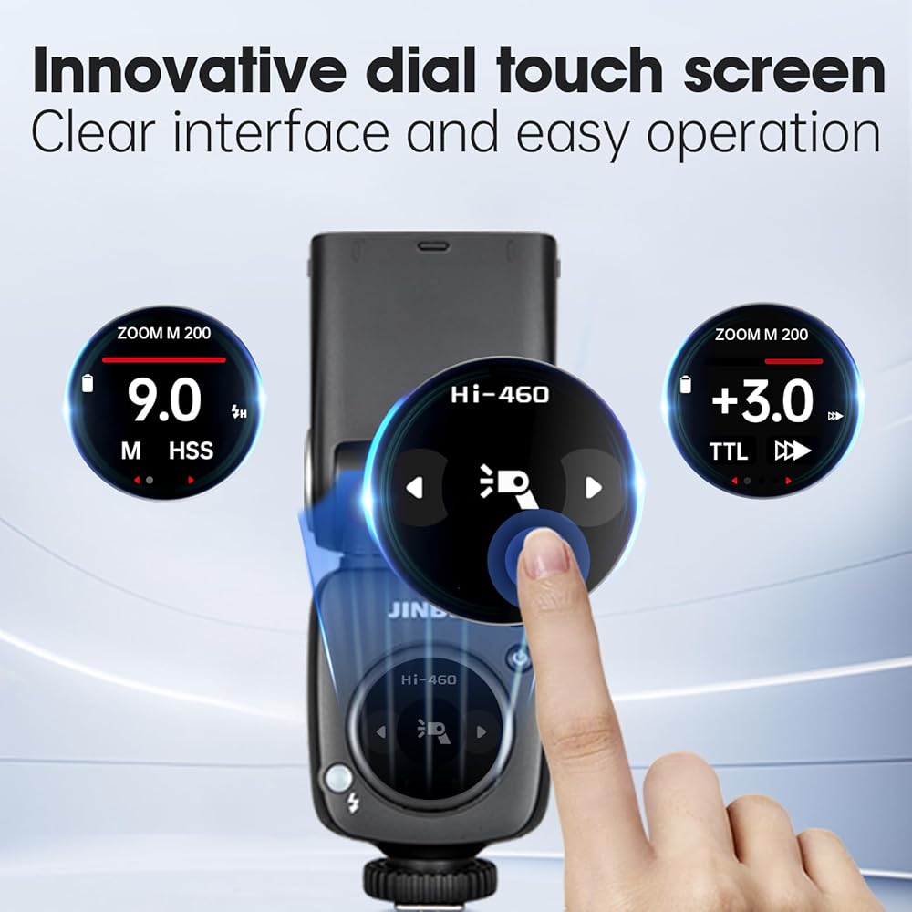 JINBEI Hi460MAX TTL HSS Speedlite for Camera with Touch Dial Hotshoe Universal for Canon Cameras Nikon Fuji Olympus Hot Shoe 2.4G Wireless System Lithium Battery Powered