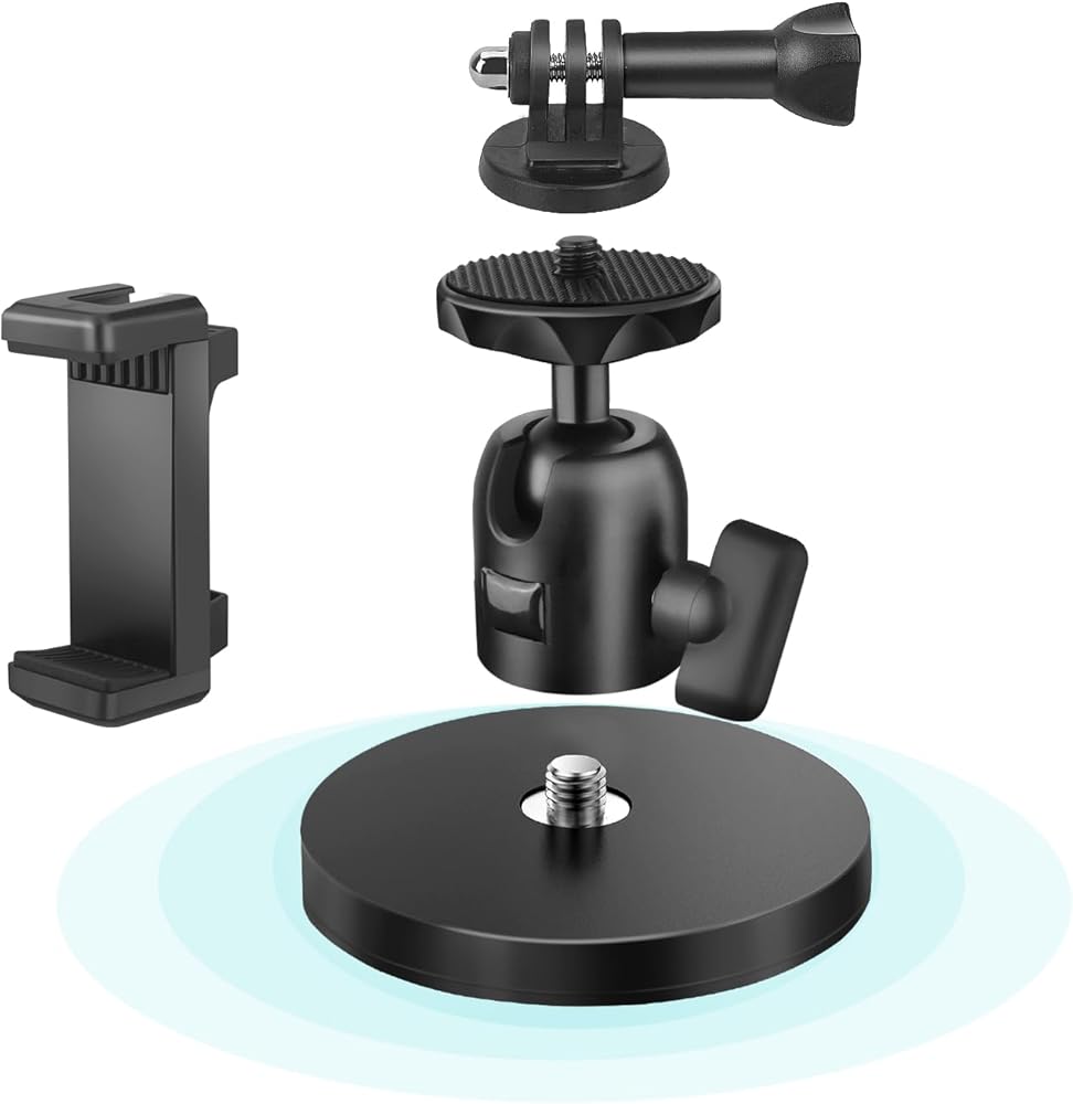 Flexible Angle Adjustable Ball Head: 1)360°swivel detachable tripod ball head mount ensures 360 degree horizontal rotating and -90°/+45° front tilt for multi-angle shooting. 2)Only by rotating the knob can be adjusted to the desired angle to meet your needs without removing the devices