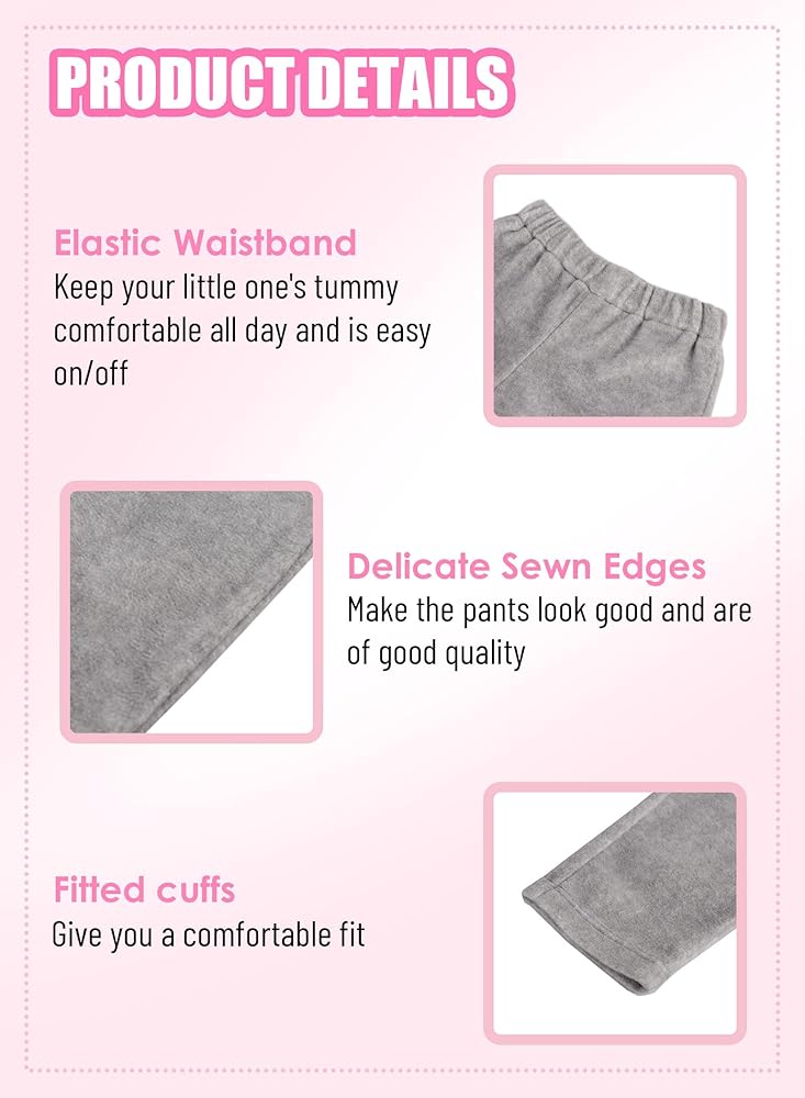 GLASH Kids Toddler Girls Sweatpants, 4pcs Casual Heated Micro Fleece Pants
