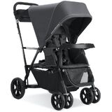 As your family grows, your stroller doesn't have to! The joovy Caboose LX Sit and Stand is a sleek black tandem double stroller that allows your older child to sit or stand in the back while your newborn/younger child rides in the front. This compact double stroller, with a capacity of 90 lbs, gives your kids the independence they want while allowing you the flexibility to be on the move with two kids in tow. The Caboose LX includes a universal car seat adapter for newborns for use from birth to 45 lbs. Once your child is three months old, they can sit comfortably in the reclining 3-position, full-size front seat, securely buckled in with a 5-point harness. The Caboose LX includes the parent organizer and a giant UPF 50+ sun protection extendable canopy that covers both the front and rear child. We made the Caboose LX sit-and-stand unisex stroller for kids with minds of their own, keeping them both happy in one place while they ride in the mode that suits them best - seated, on the bench, or standing.