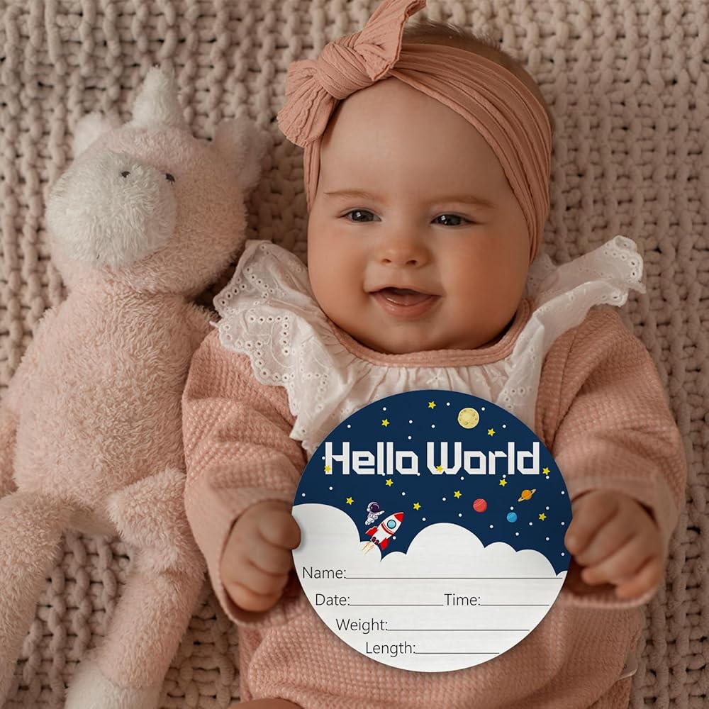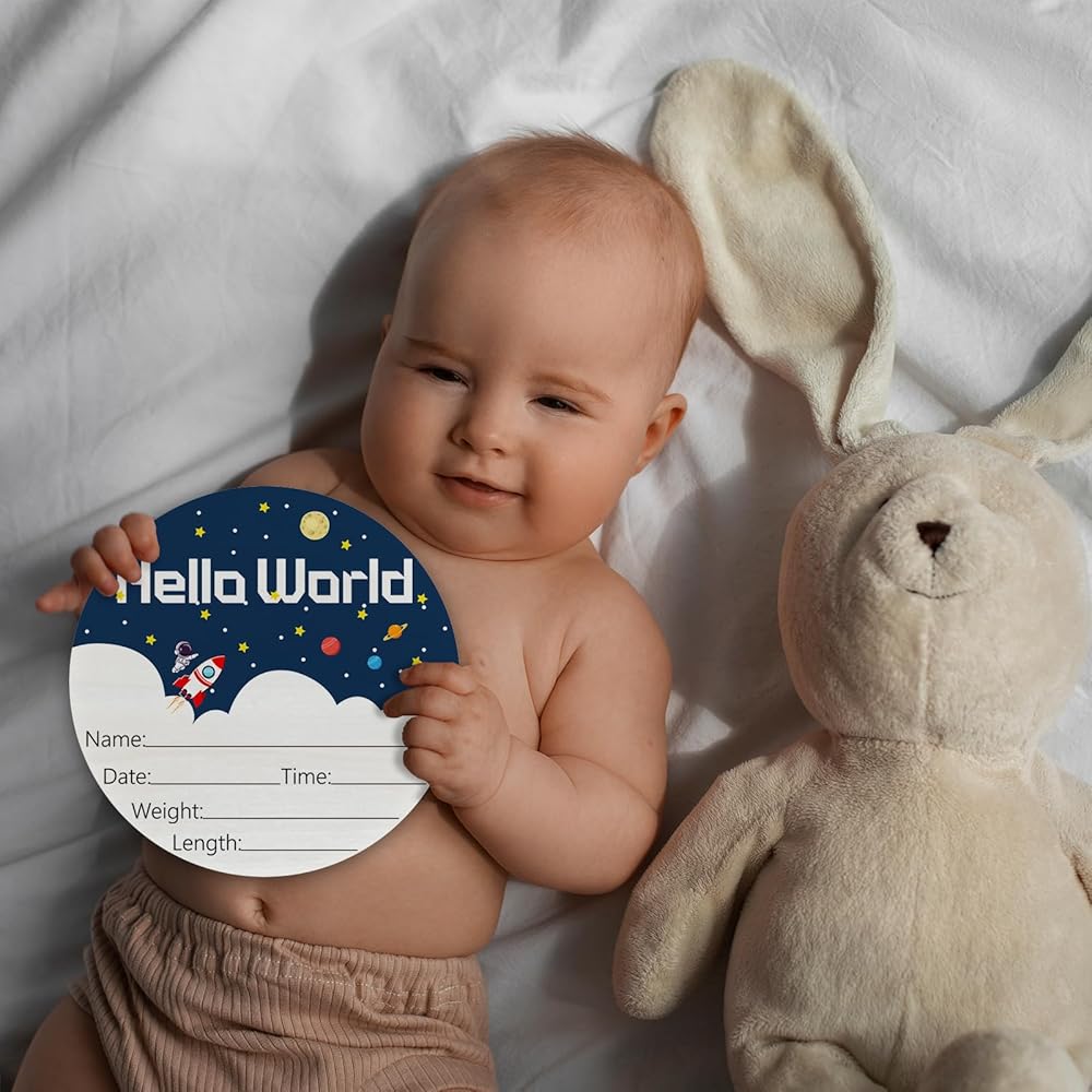 • 3.Say "Hello World" in style with our charming newborn sign and add a touch of joy to any nursery or photo shoot.