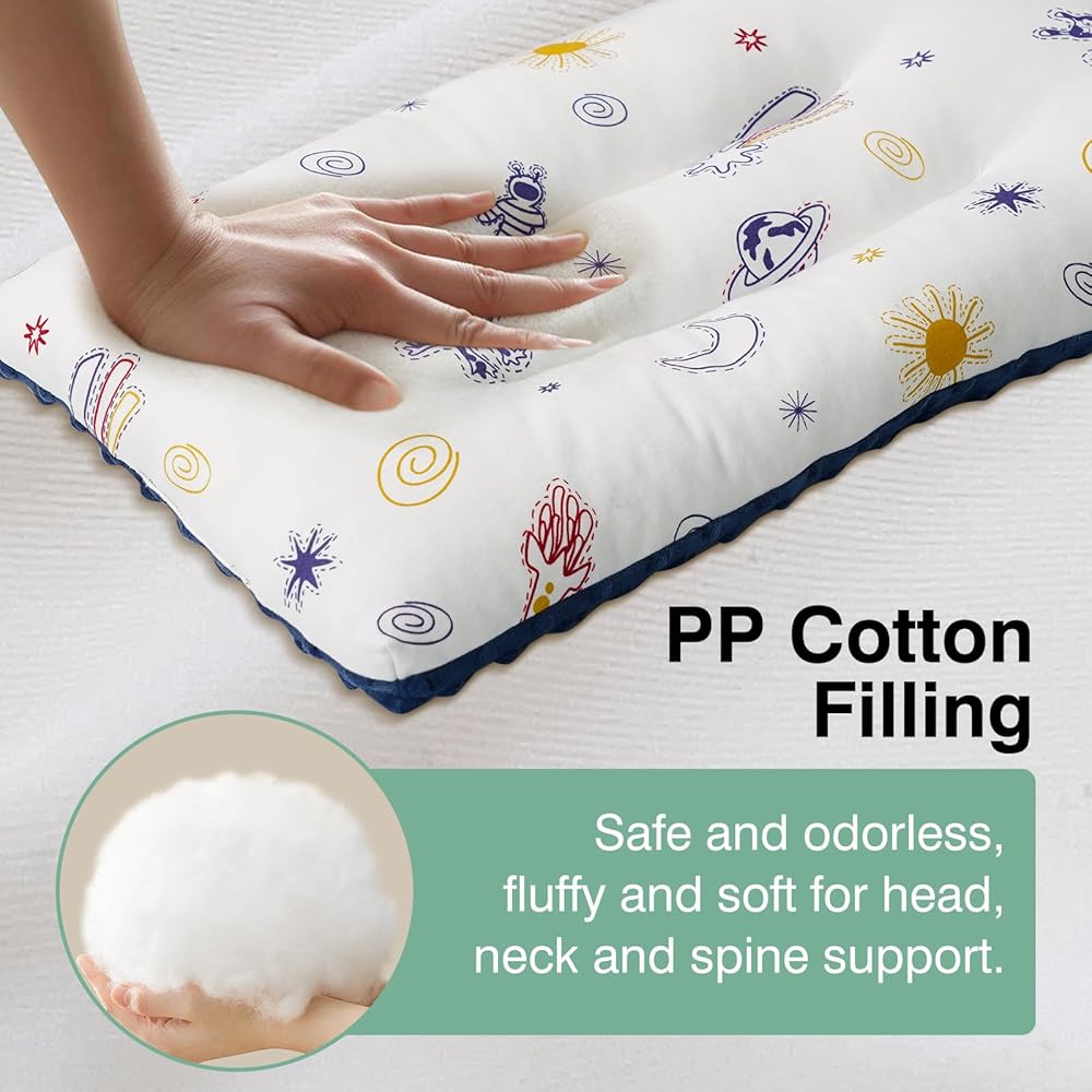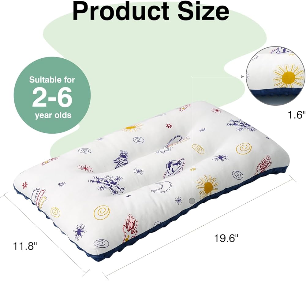 SIZE: Toddler pillow size is 19X11inches, the size is suitable for 2-6 years old children. And there are cute patterns on the pillow, which children love more.