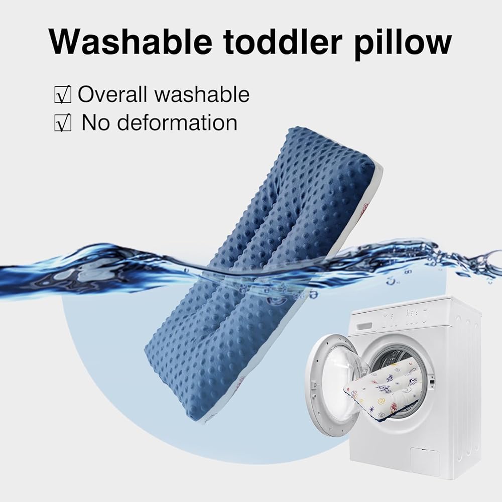 EASY TO CLEAN:The Kids sleeping pillow is easy to clean, the whole pillow is machine washable, you can put the pillow directly into the washing machine, no need to remove the pillowcase, easy to complete the cleaning, the washed pillow can continue to use after drying.