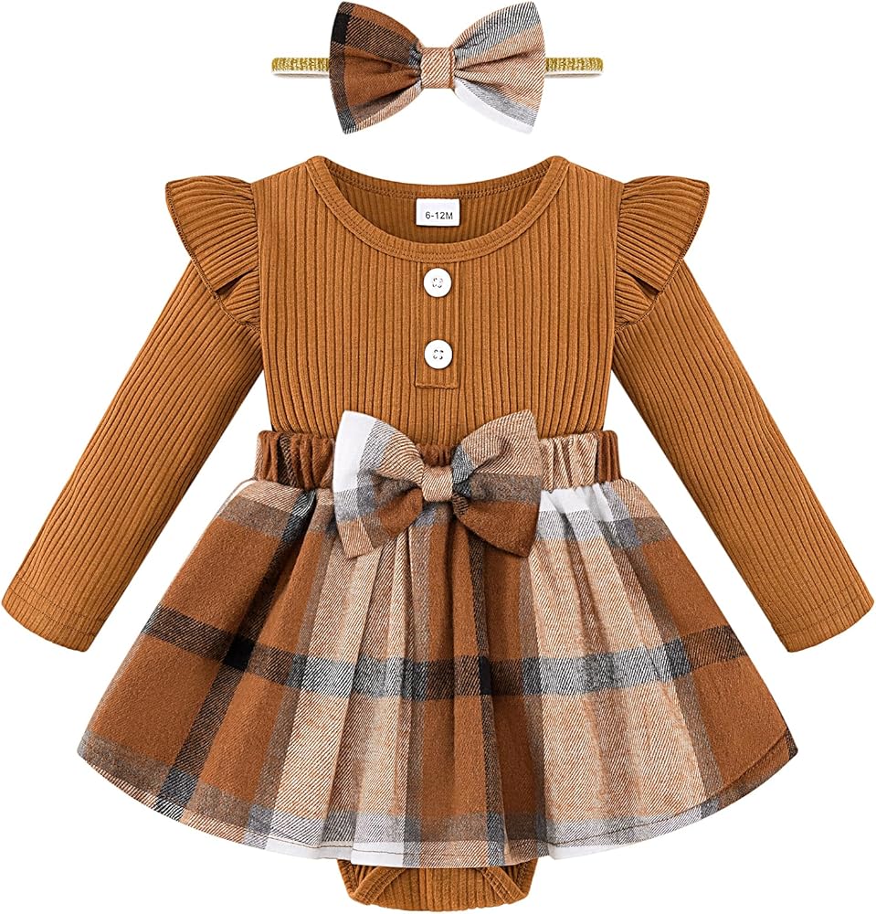 Design: Baby girl fall clothes, newborn infant baby girl outfits, solid color ribbed ruffled long-sleeved round neck romper dress, snap closure for easier diaper changing, matching with cute bow headband. Cute baby girl outfits, very adorable and fashionable, great for fall and winter.