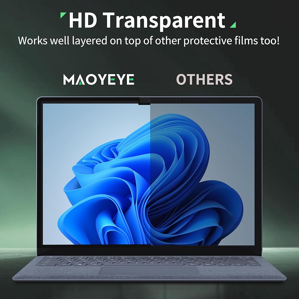 【SUPERIOR PRIVACY】Our surface laptop 5 privacy screen film features advanced technologies ensure that the contents of the laptop screen protector are invisible to the line of sight beyond 28 degrees.With this Microsoft black Security screen cover you don't have to worry about information leakage in public