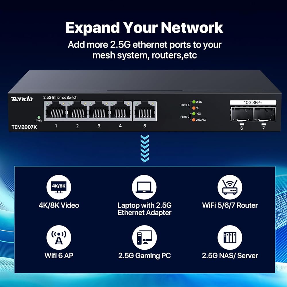 【𝗙𝗥𝗘𝗘 𝗧𝗘𝗖𝗛-𝗦𝗨𝗣𝗣𝗢𝗥𝗧】Tenda 8 port 2.5Gb switch provides an industry-leading 3-year with FREE lifetime 24/7 dedicated tech-support team call us or email us