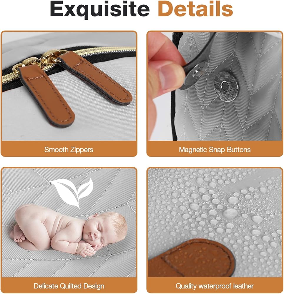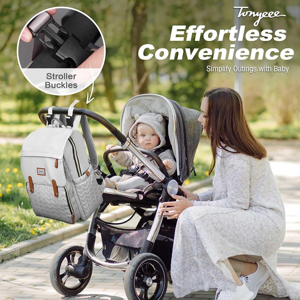 Worry-free Childcare:Our stylish diaper bag comes with a changing pad that you can use to change your baby's diaper anywhere.The functional baby backpack has two adjustable stroller buckle straps,you can easily attach the diaper bag to the stroller