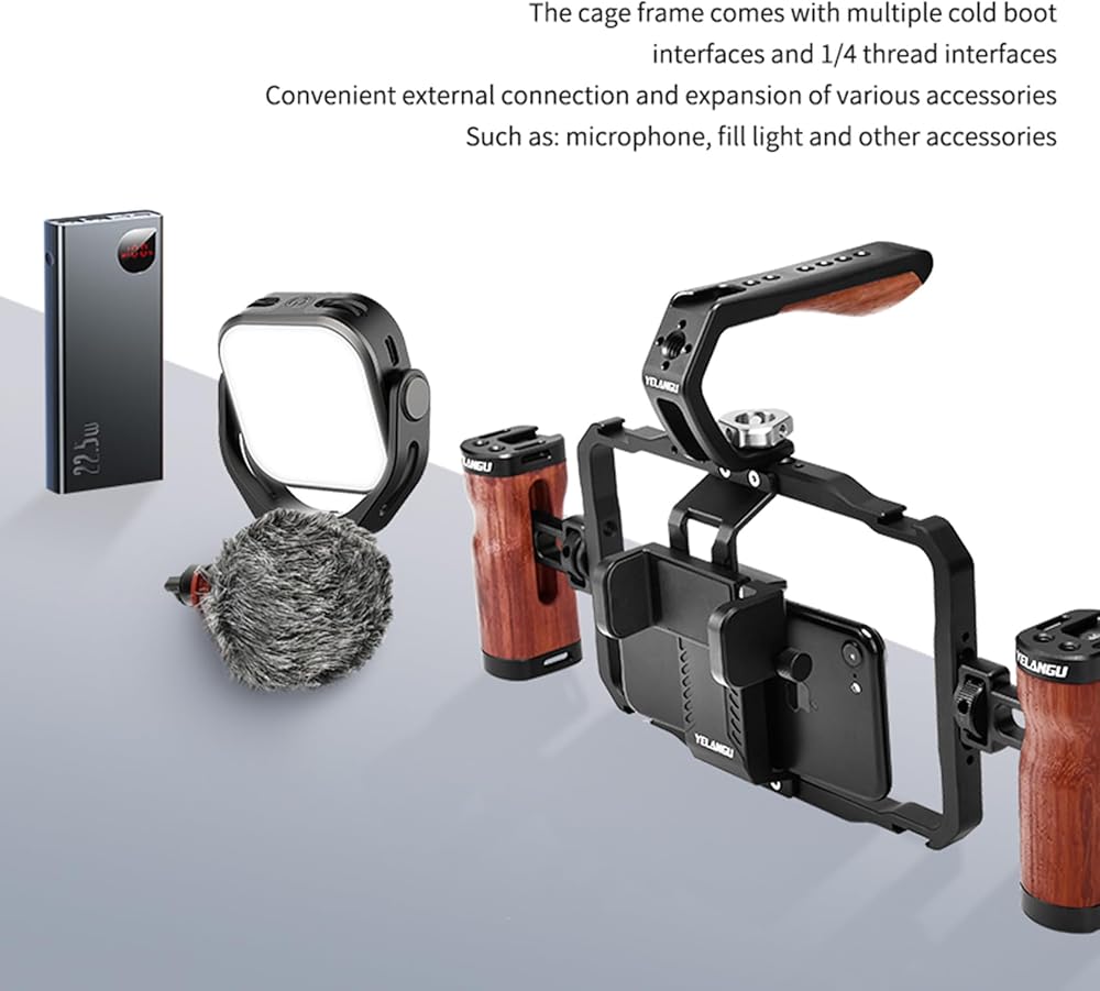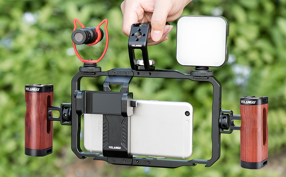 VERSATILE SMARTPHONE VIDEO RIG: YELANGU's smartphone video rig is a universal solution compatible with a wide range of mobile phones. Perfect for vlogging, video recording, and live streaming, meeting all your creative needs.
