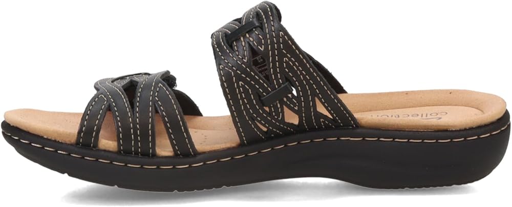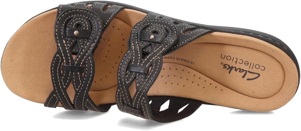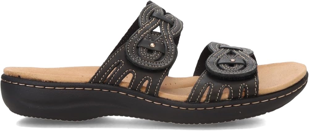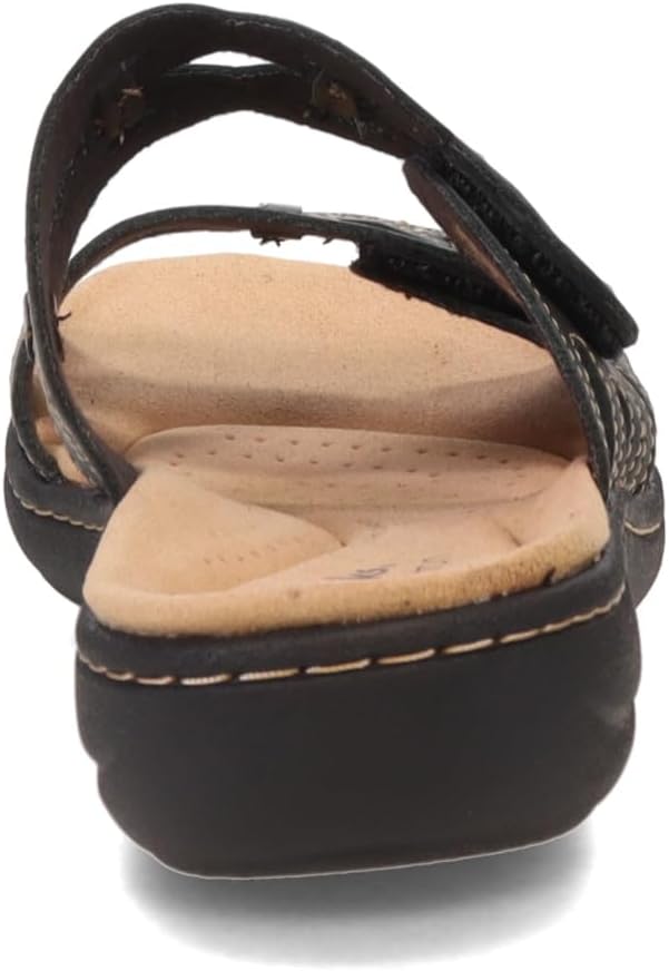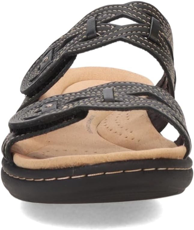 Classic style and long-lasting comfort combine in the Laurieanne Dusk slide sandal from Clarks. Made of responsibly sourced leather, this sandal features an Ultimate Comfort footbed and lightweight sole to keep you at ease all day long. Responsibly sourced leather upper with decorative textured designSlide on style with adjustable hook and loop closure straps for a secure fitFabric liningsContoured Ultimate Comfort foam footbedManmade outsole