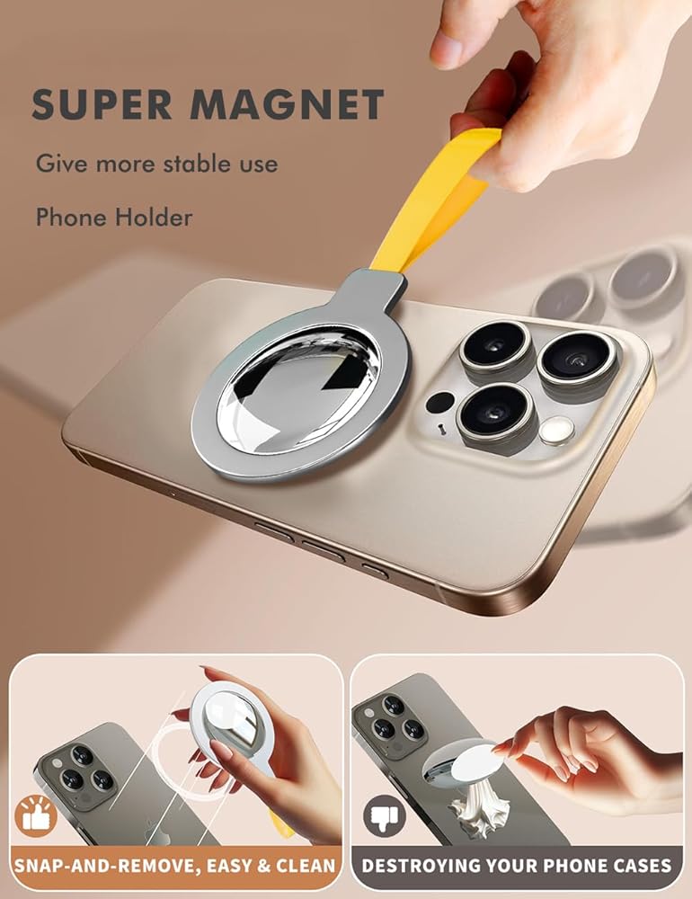 【COMPATIBILITY】Suitable for iPhone 15/14/13/12 series and Mag Safe compatible magnetic case (both official and third party cases have built-in magnetic metal). The packaging includes a magnetic metal ring, suitable for non-magnetic phones and other Android phones.