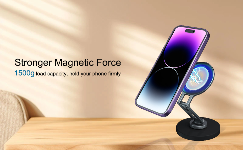 Strong Magnet Phone Holder: Built-in N52 magnets, this MagSafe phone tripod mount can hold your device firmly. This phone tripod mount allows you to release your hands to take photos, record videos or browse
