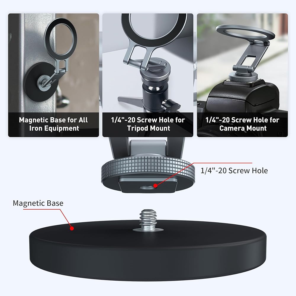 Flexible Use: With magnetic dock, the MagSafe tripod adapter can also be attached to gym equipment, allowing you to easily enjoy music or record videos. Or place it on your desk to make video calls and watch videos