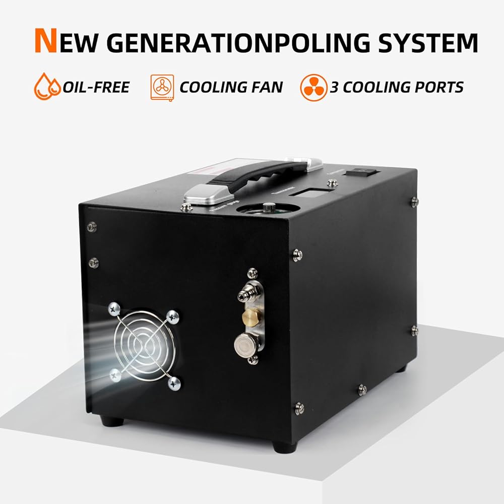 The PCP air compressor is a powerful and efficient tool for filling high-pressure air tanks used in paintball guns,air rifles,and other pneumaticdevices. With its preset pressure function, users can easily set their desired pressure level and let the compressor do the rest.