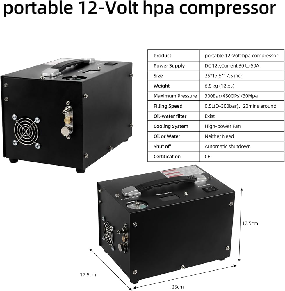 Our portable PCP air compressor, designed specifically for all your air gun and paintball gun needs. This high pressure air compressor can easily be used outdoors or at home,with the convenience of using either 110V AC or 12V DC power sources. Suitable for a variety of applications,including PCP air guns,air pistols, hpa gas tanks, and even mini diving bottles.Say goodbye to bulky and heavy compressors,and enjoy the convenience of our versatile PCP air compressor.