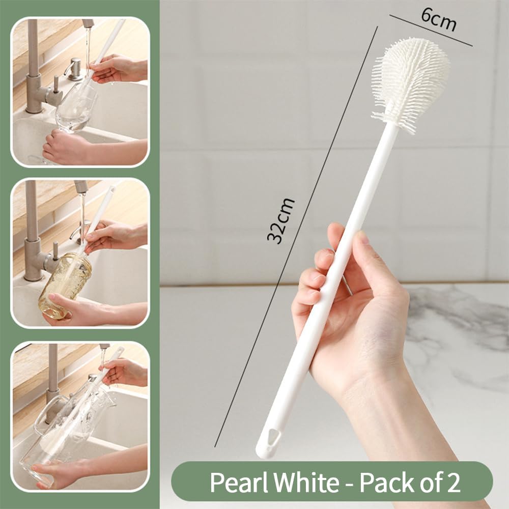 Bottle Brush Quick Cleaning Dishwashing, Long Handle Dish Cup Bottle Washing Scrubber for Rinse Pan Dish Bowl, Water Cups, Coffee Mugs,Baby Bottle Usable - White 2 pcs