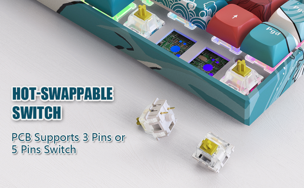 【Hot-swap Switches Keyboard】You can alter every gateron switch on the M84 keyboard without the need to solder. Hot-swap PCB is compatible with almost all 3-pin/5-pin switches on the market, personalize your typing experience with ease.