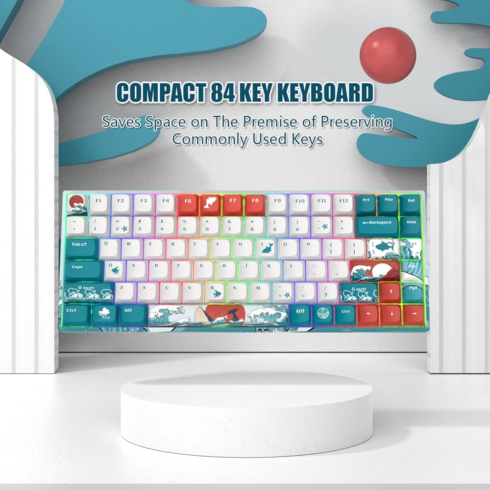 【Coral Sea Theme Ergonomic Keyboard】XVX's new 75% layout mechanical keyboard in fusing art and modern technology as one, showing the coral sea pattern in 360 degrees. Compact 84 keys with unique XVX profile keycaps, curved keys match the shape of your fingertips, offering satisfying feedback with every tap.