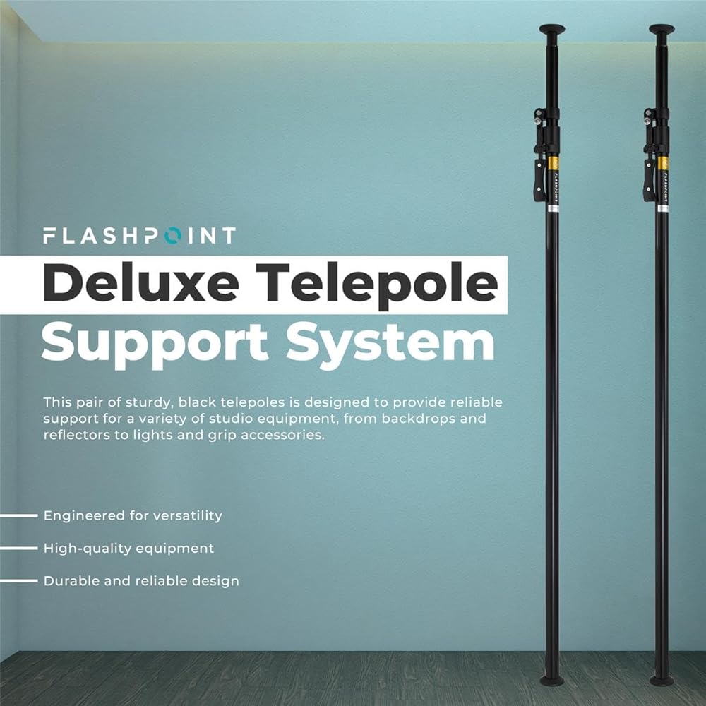 How can you transform any space into a professional photo studio? The answer lies in the Flashpoint Deluxe Telepole Support System. This pair of sturdy, black telepoles is designed to provide reliable support for a variety of studio equipment, from backdrops and reflectors to lights and grip accessories.