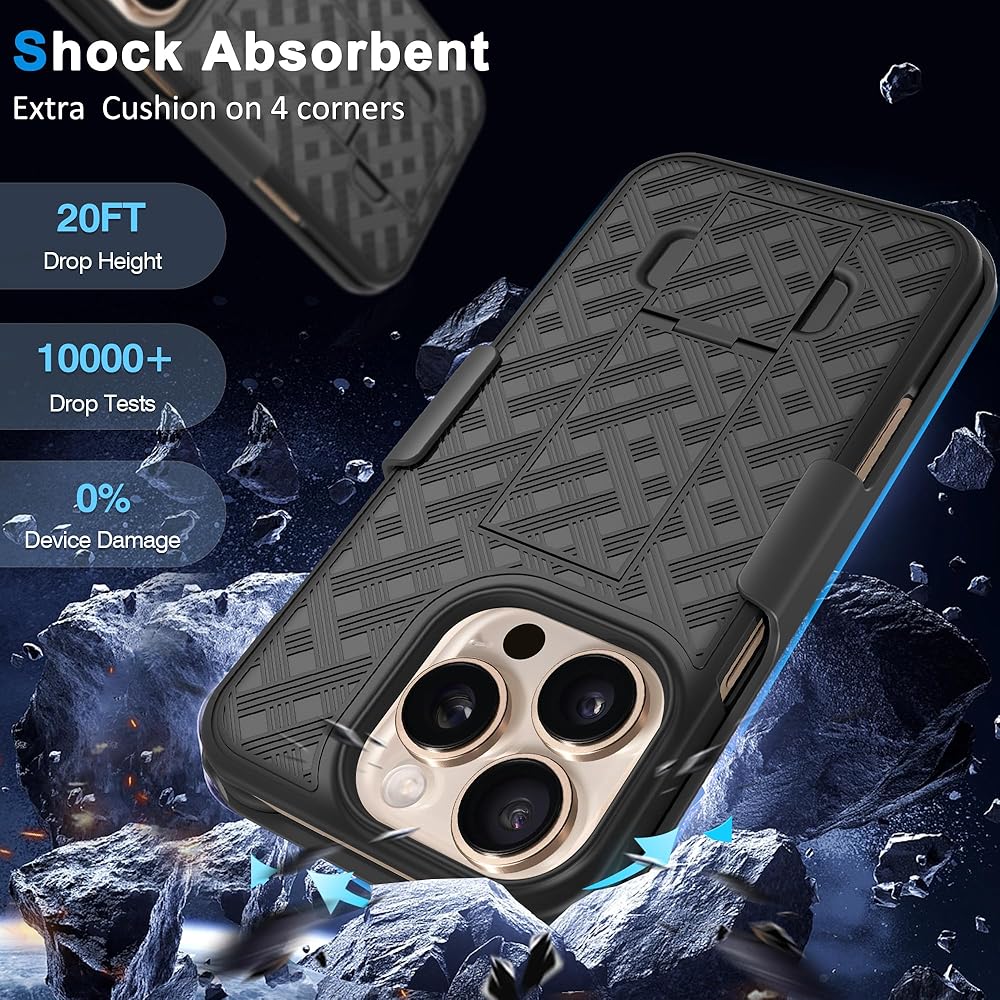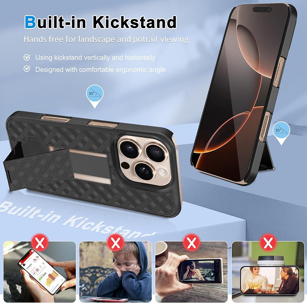 Fingic for iPhone 16 Pro Case with Belt Clip Holster Case Slim Combo Shell with Kickstand Swivel Holster Rugged Shockproof Antiscratch Full Body Protective Case for iPhone 16 Pro,6.3 inch,2024,Black