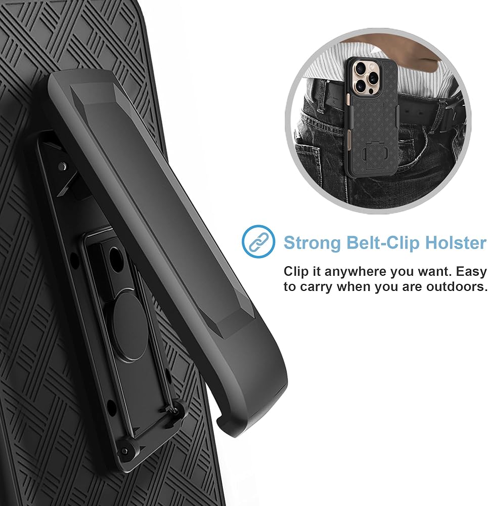 Holster shell is engineered with practicality and durability in mind, combine with 2 interlocking hard plastic pieces to protect your phone against shocks, damages, dusts and scratches