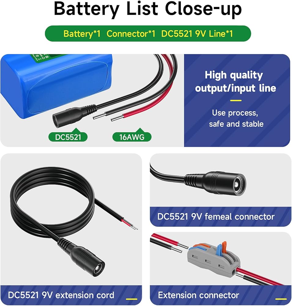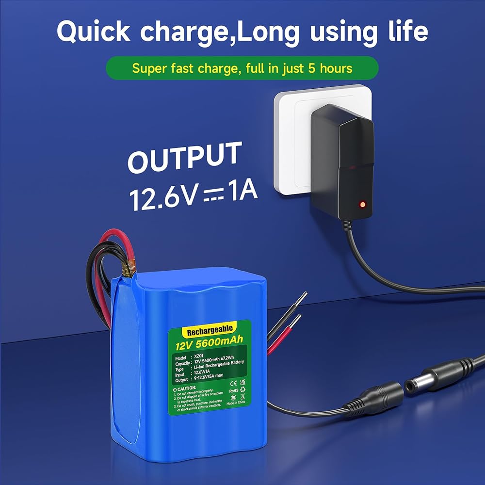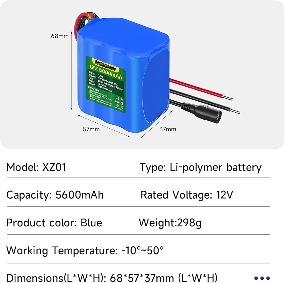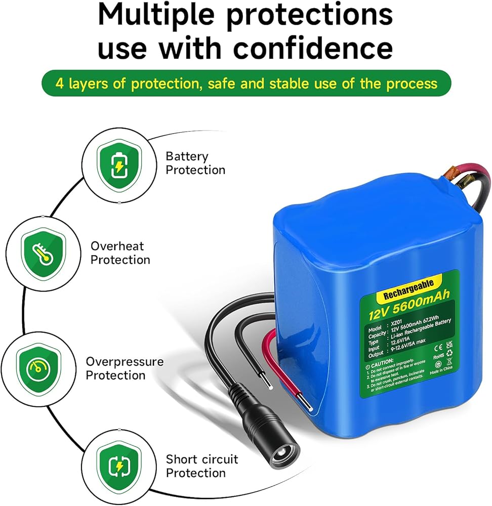 【Smart Chip】5600mAh 12V rechargeable lithium battery,build in protection board, prevent battery from over-charge, over-discharge, over-voltage and short-circuit. Each battery pack is build with premium batteries to provide your devices powerful energy