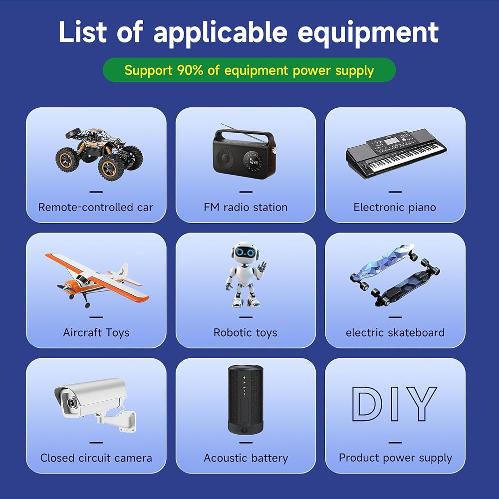【Strong Compatibility】Small size, compatible with most 12V devices. Compatible with Wireless Cameras, Personal Processing Systems, PDA Personal Data Assistants, Personal Communication Systems, Walkie-Talkies, Digital Cameras, Camcorders, Bluetooth devices, MD players, Portable DVDs, MP3 Players, Smart Cards, Aviation Models, LED Strip, CCTV Camera, Electronic Piano, Optical Network Unit, Router, Small Bluetooth Amp, Electric scooter 12V turn signals, Car DVR
