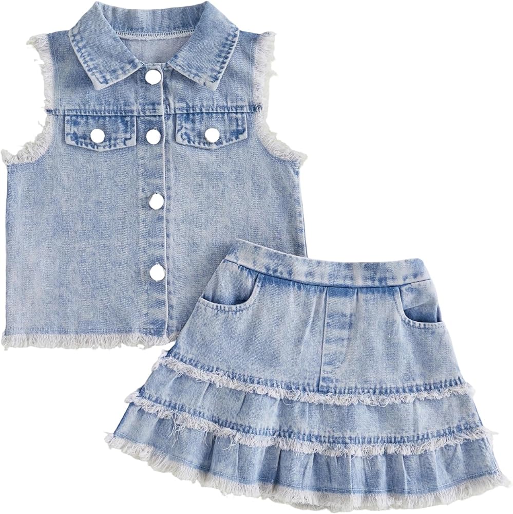 - Design: toddler girl denim outfit, cow outfit toddler girl clothes, cow print ripped denim skirt, jeans for girls, girls jeans skirt, baby girl plaid outfit, ripped jeans skirt for girls, baby girls jeans set, toddler baby girls ruffle sleeveless top, denim skirt set outfit.