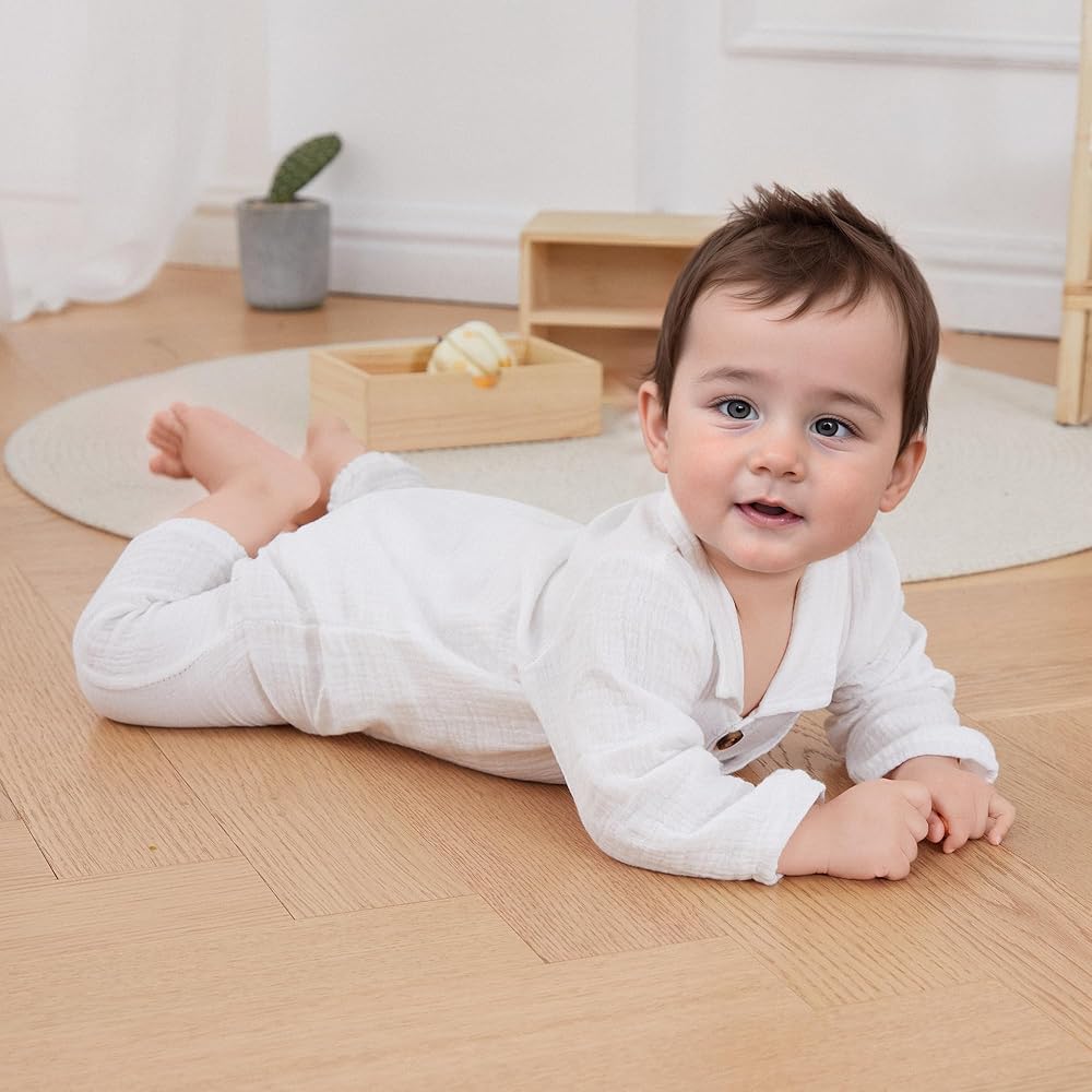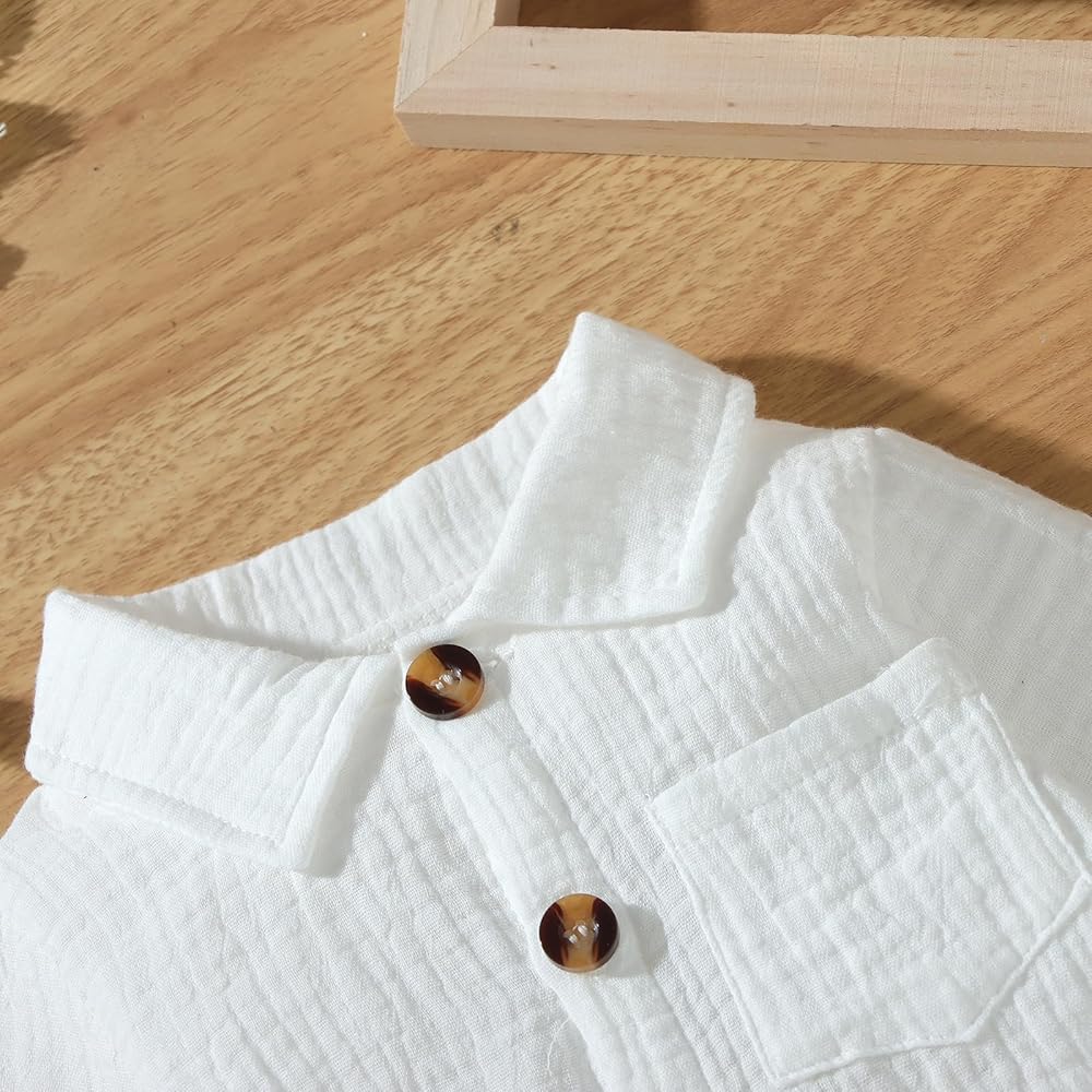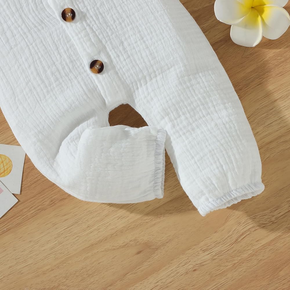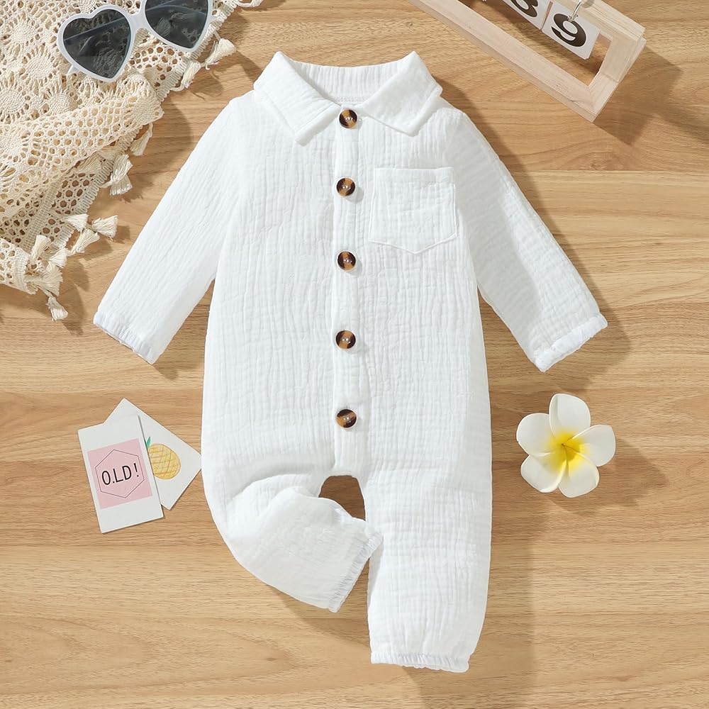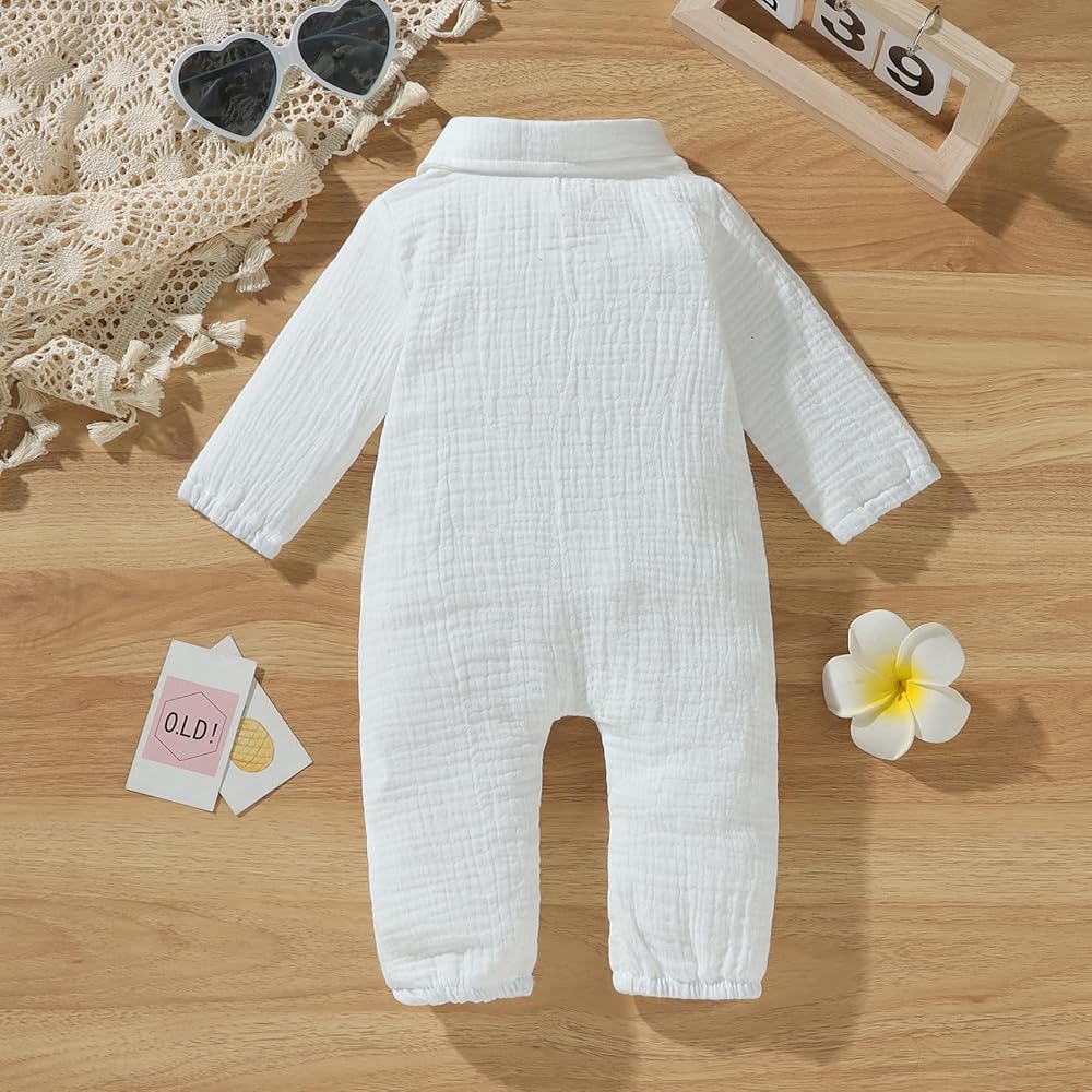 Package includes: 1 * long sleeve romper baby boy, cute and casual style, suitable as a dress for babies to play, run, game, sleep, travel, and children's activities.cotton linen long sleeve button up shirt bodysuit collared romper one piece outfit