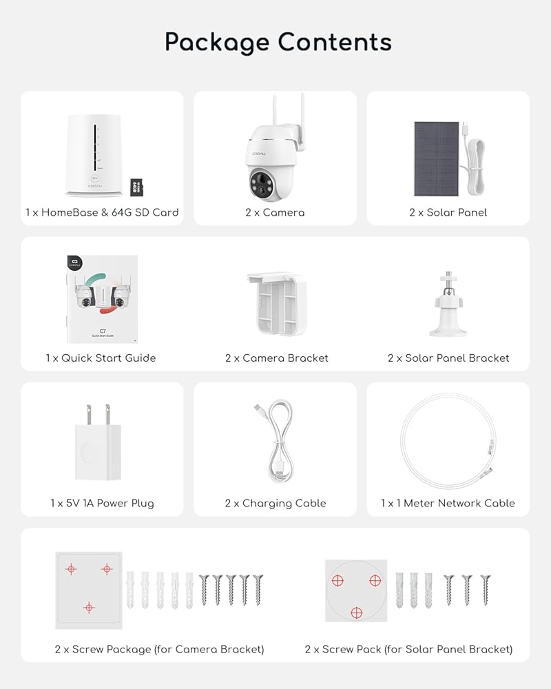 【COOAU Brand Camera】In addition to the above functions, the surveillance camera set also has an indoor HomeBase alarm, clear 4-LED color night vision/infrared night vision, privacy zone settings, multiple recording options, two-way voice, etc., providing more security monitoring options. And COOAU provides 2-year warranty, 24-hour fast email response, etc. If you have any questions after purchase, you can contact us for technical support or product replacement: [email protected].