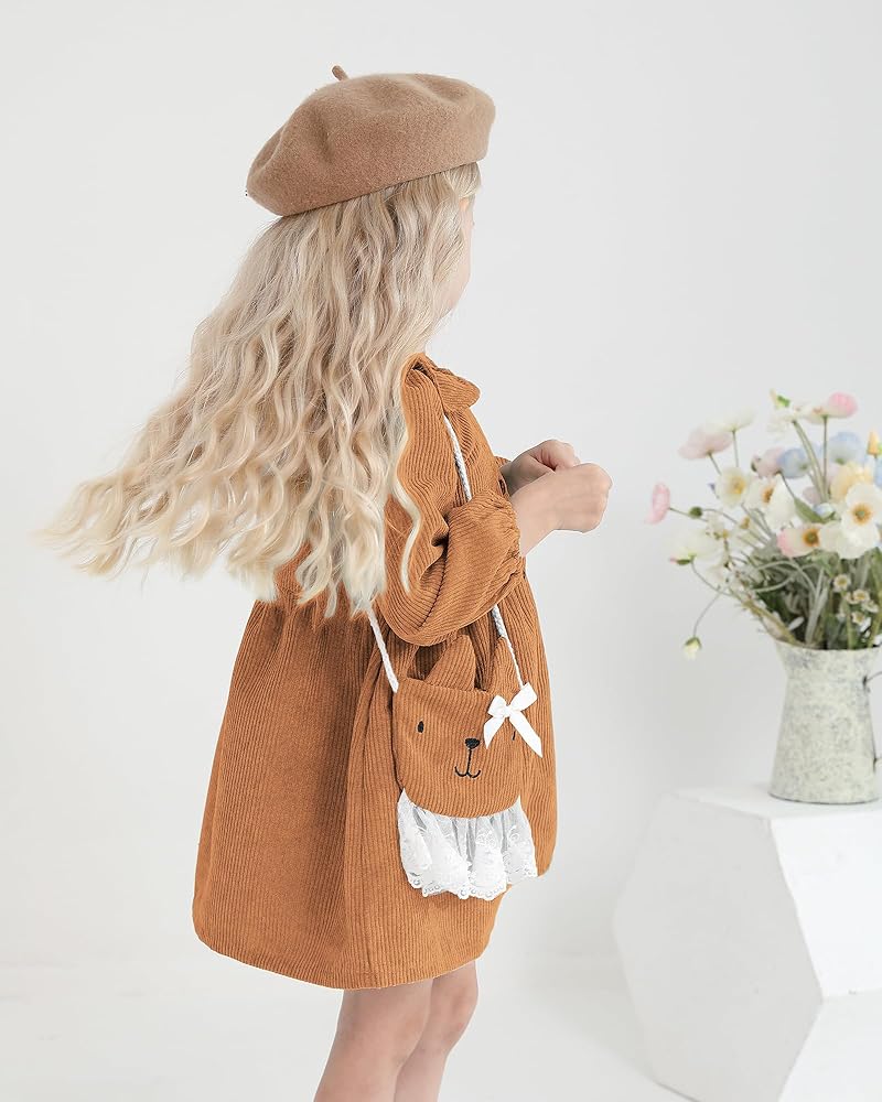 Cute Designs:Baby girl dresses, long sleeve, crew neck with cute satchel, make this outfit lovely and beautiful. There is a diverse range of styles to choose from: pink/red/yellow/green