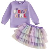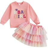 🍰 FEATURES - Birthday girl dress, birthday girl outfit, fall winter baby girl clothes, long sleeve crewneck pullover sweatshirt, boutique embroidery ''B'DAY GIRL'' letter printed sweater shirt, oversized sweatshirts match with tutu tulle rainbow skirts dress, two pieces birthday girl clothes, birthday shirt from one to five years old, makes your baby girl more attractive and adorable!