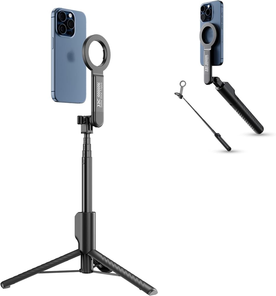 【Widely Compatible】This Magnetic Phone Selfie Stick Tripod fits iPhone 15/14/13/12 series without/with Magnetic Case(both official and third-party case with built-in magnet metal) , Package Includes metal ring fits non-Magnetic Phone and other Android phone. The detachable design enables the magnetic mount connector to transform into a GoPro mount, allowing direct connection to GoPro or DJI ACTION cameras.