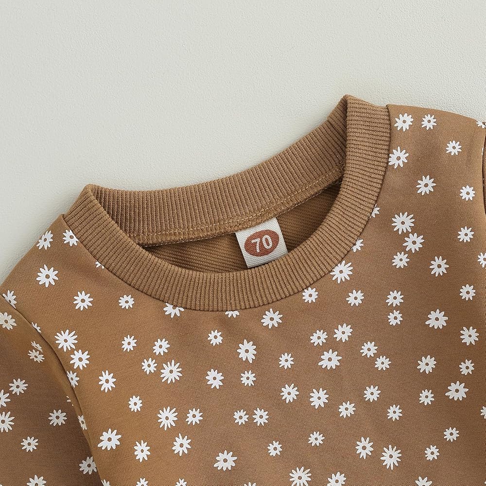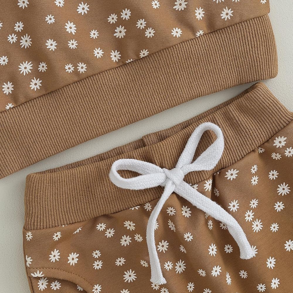 Toddler Baby Girl Fall Outfit Long Sleeve Crew Neck Pullover Tops Sweatpants Set 2-piece Floral Clothes 0-3T