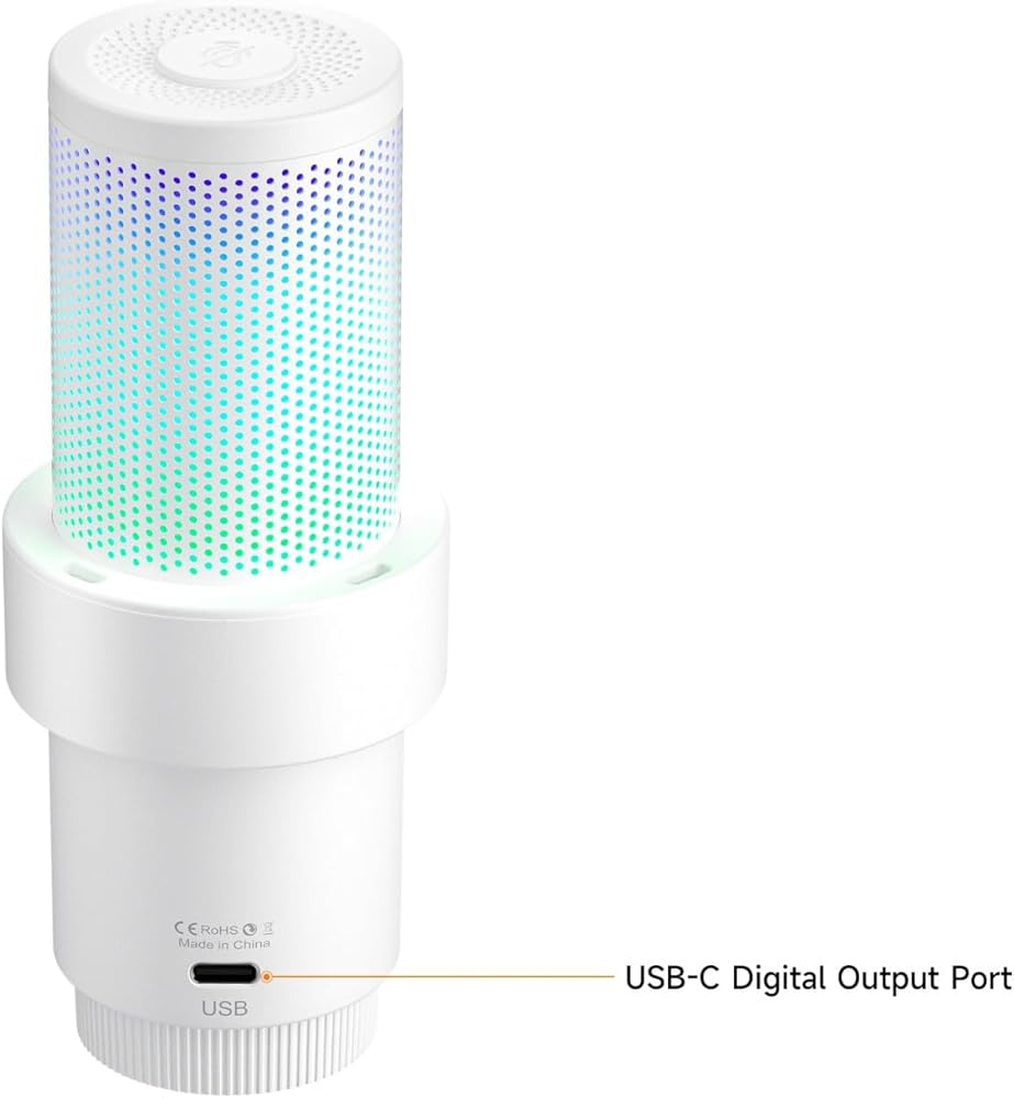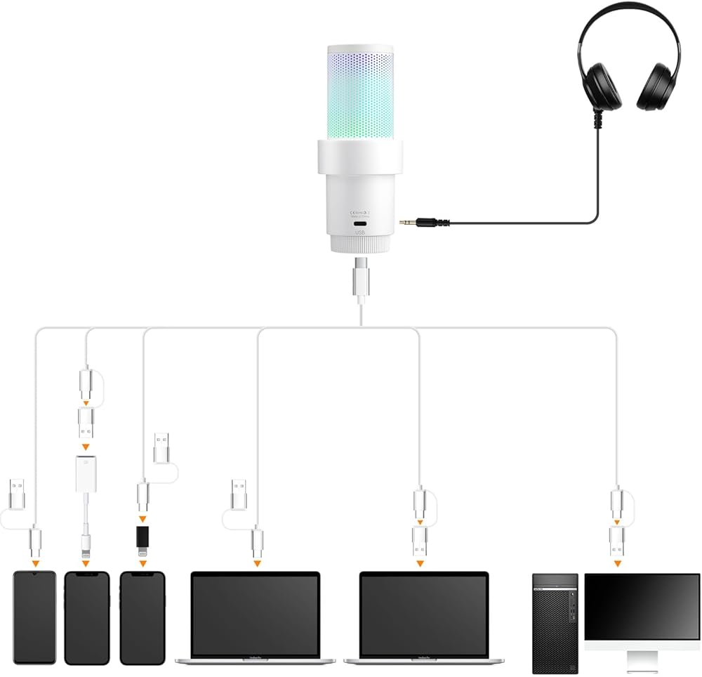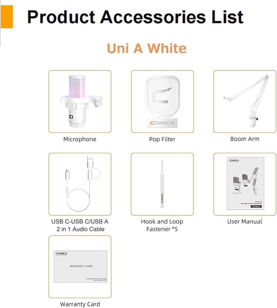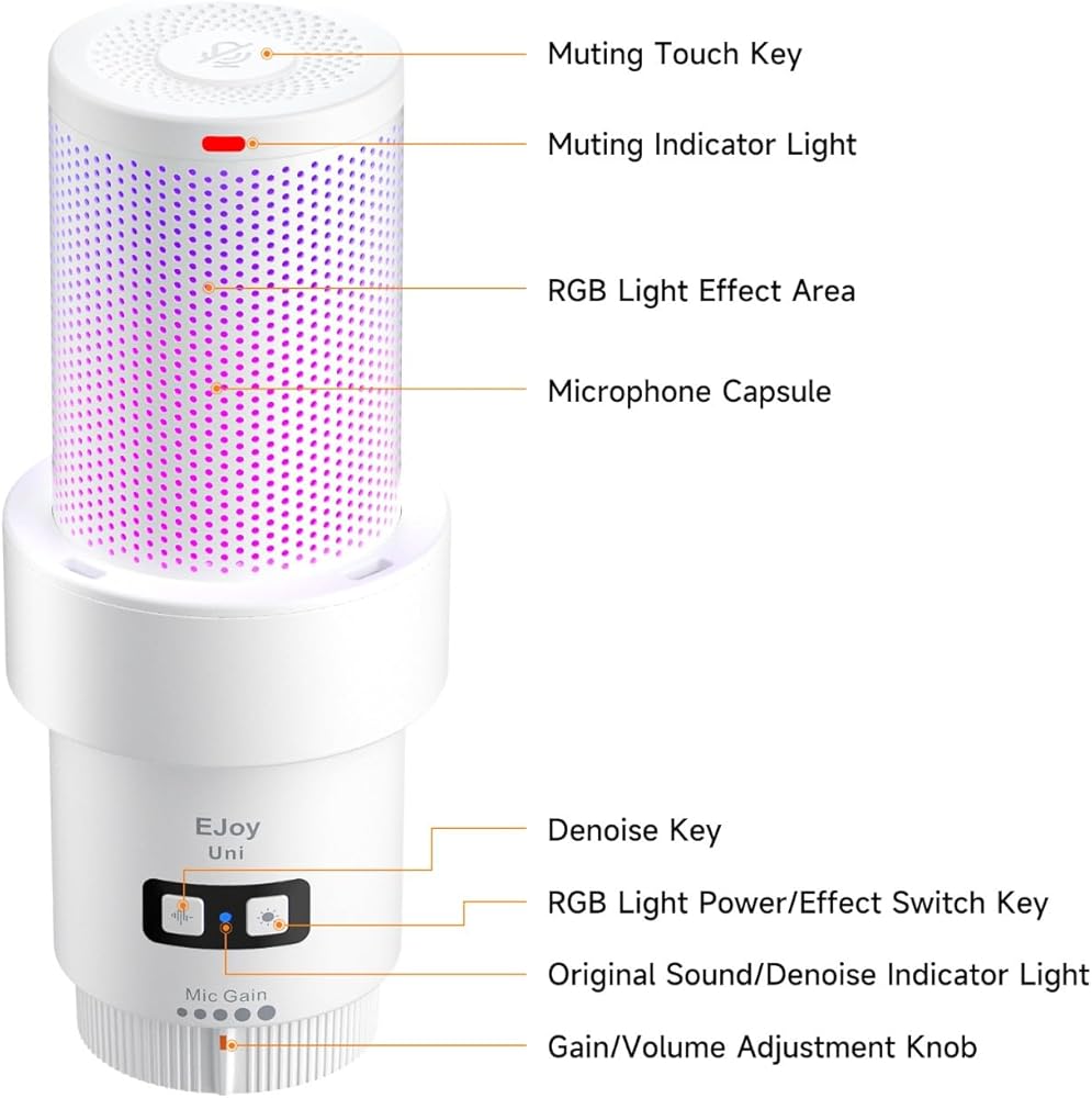 comica EJoy Uni A USB Microphone for Computer and Smartphone,RGB Cardioid Condenser Gaming Mic for Podcasting,Streaming,Recording,Music Creation,with Boom Arm Stand-White