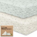 2-Pack Fitted Crib Sheets - Each KeaBabies Soothe Protect+ Baby Crib Sheets set comes with 2 waterproof crib sheets for both boy and girl that can perfectly fit the standard nursery crib mattresses sized at 52” x 28” and height of 3” to 8”.