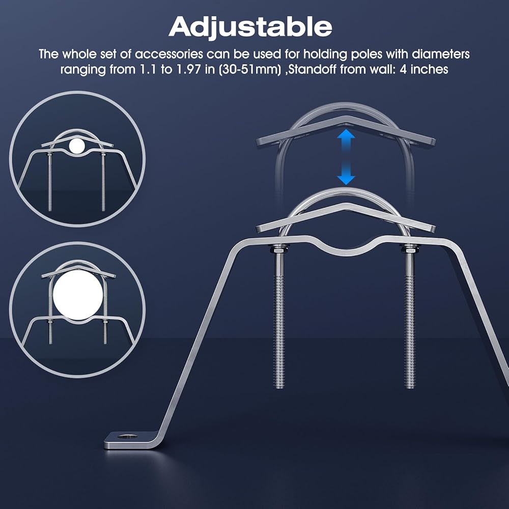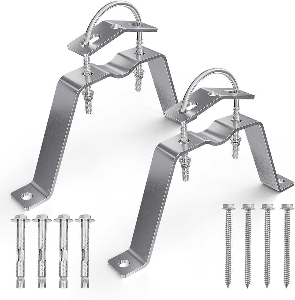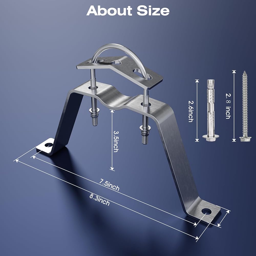 Spotlight Feature: Life-long service life, the complete sets are made of 304 stainless steel including braces,U bolts,washers,nails and every part.It gives no chance for rust and corrosion for a real life long service for outdoor installation.