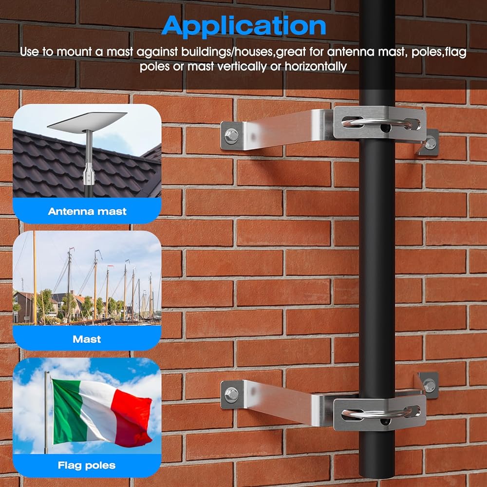 If you need to mount a large mast and antenna, this is the bracket you want to get. You will get two 3-legged mount braces, Both 3 -leg pair can improves the upload strength for additional heavy loads,strong enough to support a long mast with a large antenna on top.