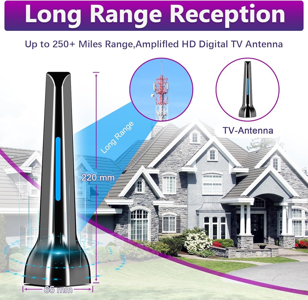 𝟯𝟲𝟬° 𝗟𝗼𝗻𝗴 𝗥𝗮𝗻𝗴𝗲 𝗥𝗲𝗰𝗲𝗽𝘁𝗶𝗼𝗻: يعمل هوائي التلفزيون الداخلي بزاوية 360 درجة لالتقاط إشارة أفضل، ويوفر نطاقًا إضافيًا يصل إلى 120 ميلًا وأقصى استقبال للإشارة للمزيد القنوات حتى وأنت بعيد عن أبراج البث. ستستمتع دائمًا بالبرامج التلفزيونية التي تحتوي على صور أكثر وضوحًا وسلاسة في أي وقت
