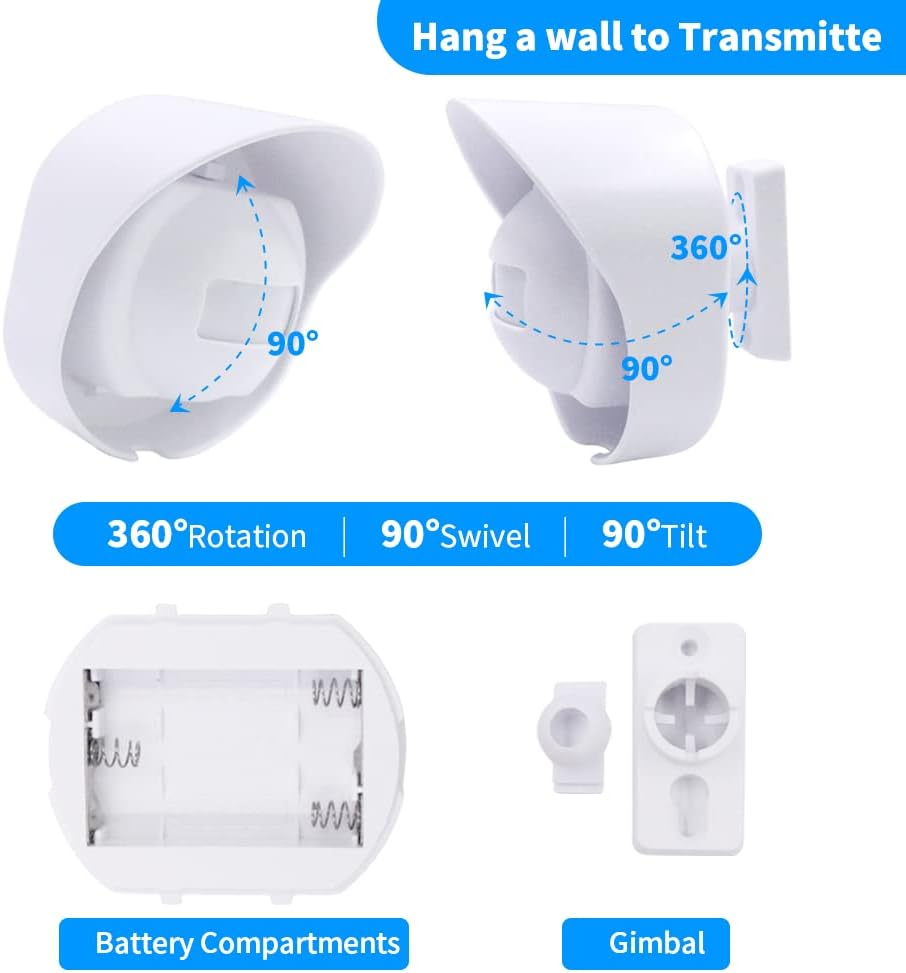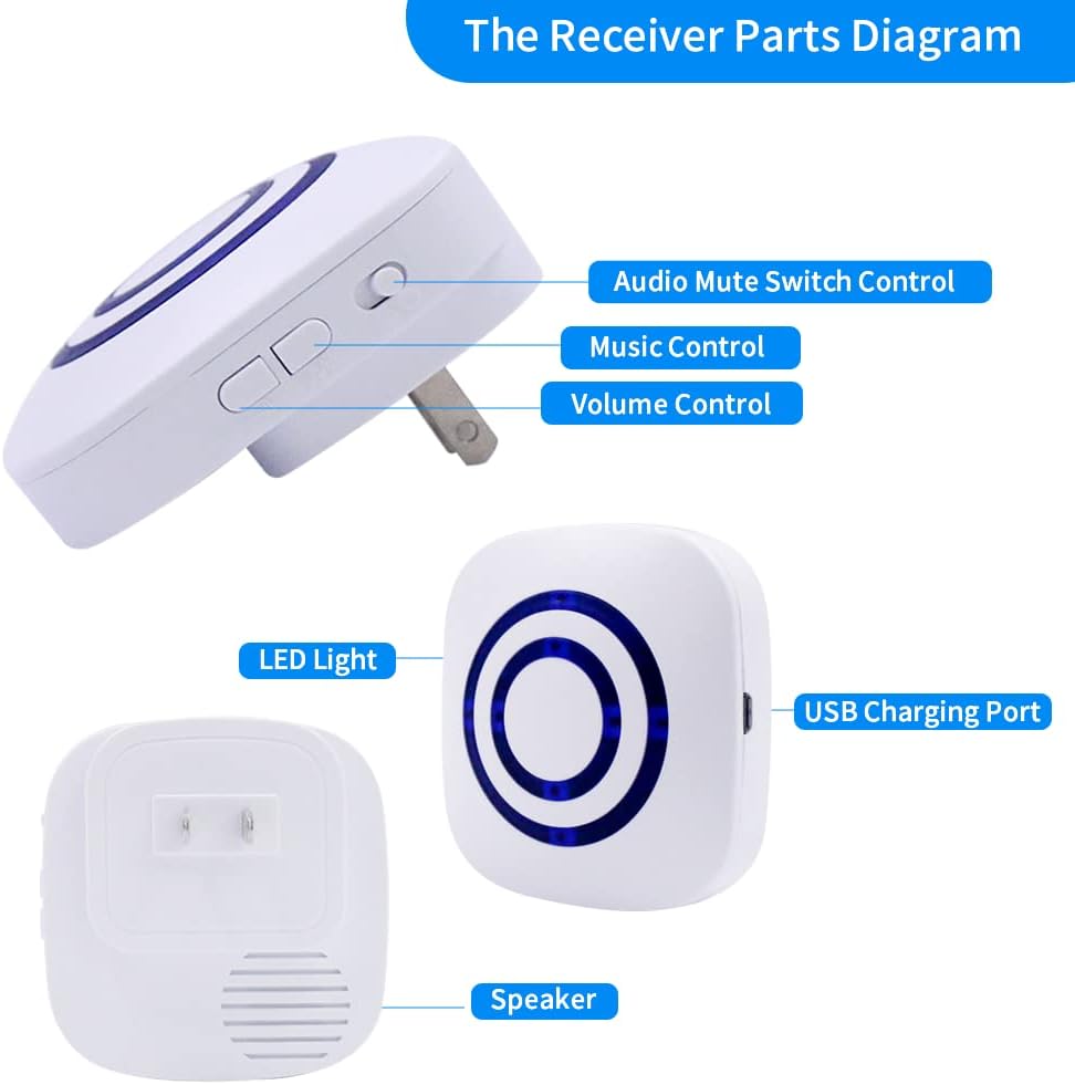 • 【3 Alert Options & 38 Chimes】The wireless outdoors sensor features 3 Alert Options (Audio Chimes/Flashing/Chimes and LED), 38 chimes and 3 volume levels from (25db to 80dB) to suit your needs.(You can choose the silent mode, only flashing lights without ringing, to avoid waking up sleeping babies or the elderly.)