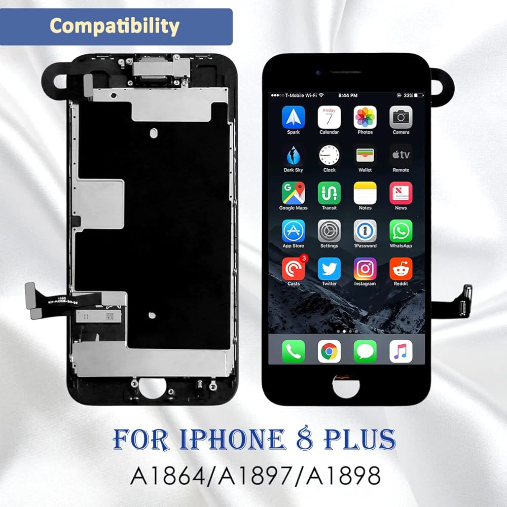 ⭐『Compatibility』High quality LCD display and digitizer glass screen assembled for iPhone 8 Plus (5.5 inches). If your iPhone 8 Plus screen is cracked/ unresponsive/ damaged/ with dead pixel, this is the right part for you.
