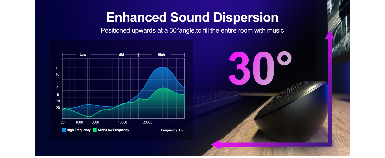 Precision Audio Projection: Precise and clear sound projection with our pc speaker's carefully crafted 30-degree beveled design, enhancing your audio enjoyment.