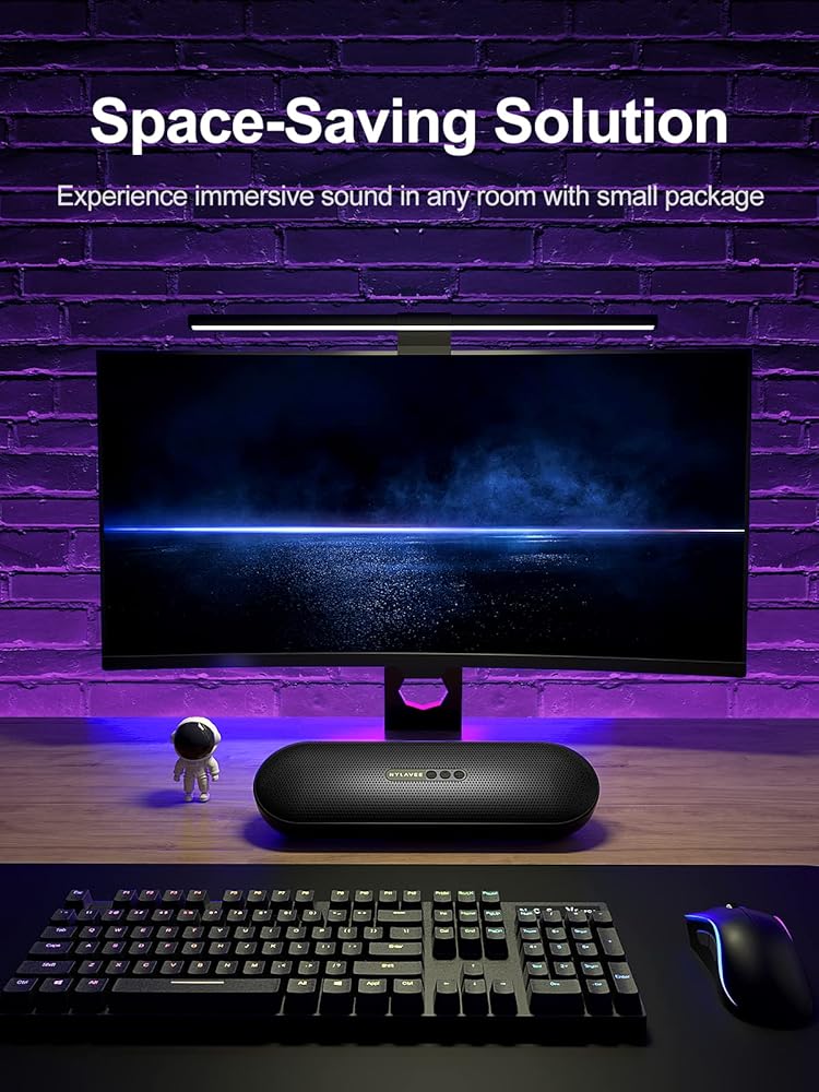 Space-Saving Design: Mini computer sound bar is compact and sleek, perfect for small spaces, saving you valuable desk or countertop space.