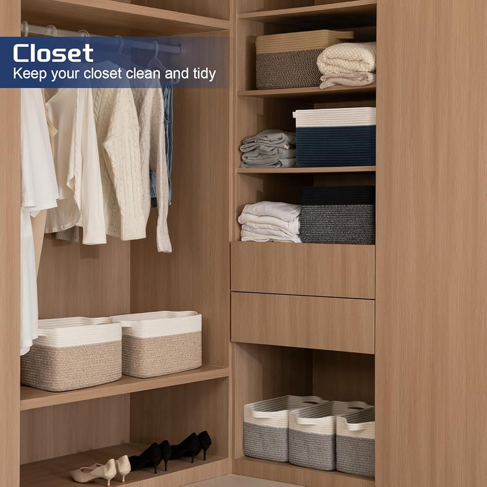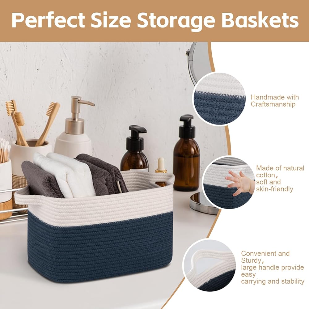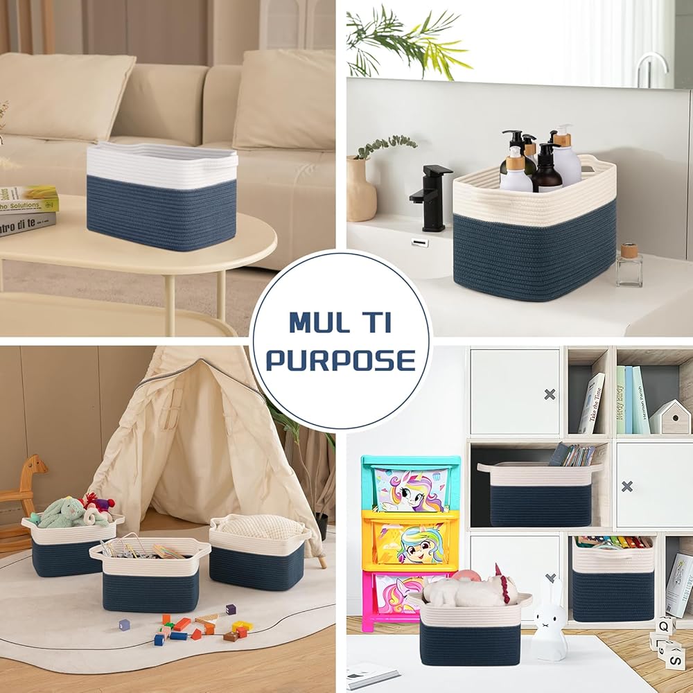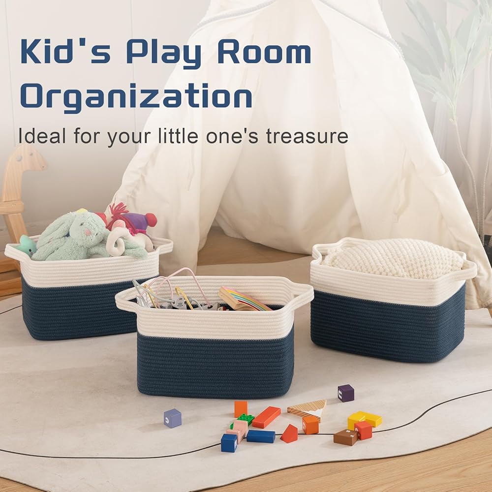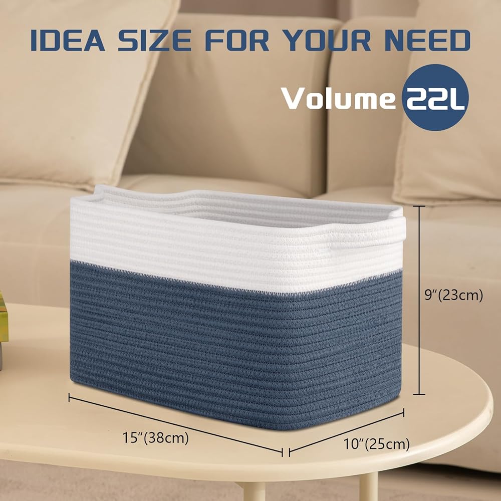 【 High-Quality Cotton Rope Baskets】Our storage baskets are made of high-quality natural materials, The rope material used in these baskets is soft to the touch and safe for kids, elders, and pets, the rope storage baskets have no harsh chemicals added, and is more durable than rattan and plastic materials. The sturdy construction ensures they can withstand the daily wear and tear of play, making them ideal for long-term use.