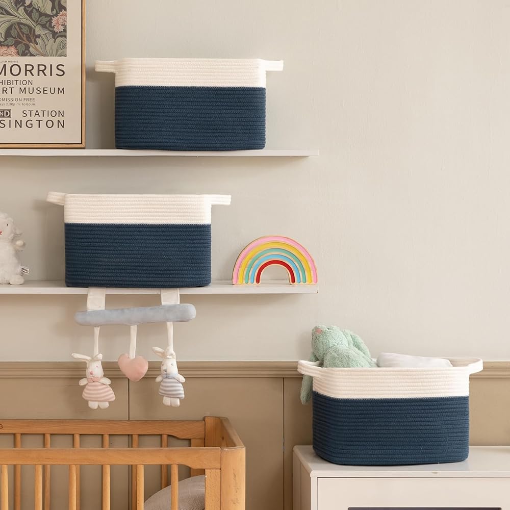 【Easy to Handle】Our woven storage bins are designed with two sturdy handles on both sides, that make them easy to move around your home. Whether you're carrying them up and down stairs or from room to room, our nursery basket set is designed to withstand the rigors of daily use.