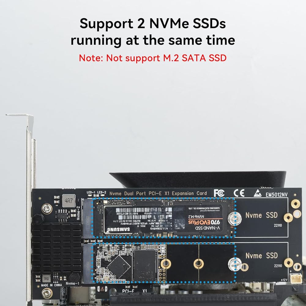 【PCIE M.2 Conversion Adapter Card】 PCI Express card with NVMe and SATA M.2 SSD slots. 2230/2242/2260/2280/22110 M.2 PCIE (NVMe/NGFF) B-Key/M-Key/B&M key SSDs are supported. PCI-e protocol SSDs with NVME specifications must support read in WIN10. Motherboard BIOS support for PCI-e boot is required to boot as a system disk.