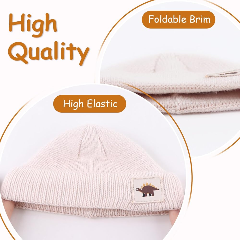 Adorable Design: Featuring a cute dinosaur label sewn on the front,this baby knit beanie hat combines classic style with stylish colors suitable for both boys and girls,and will never go out of style.You can easily find the colors that matches with your baby's outfits and vibes.
