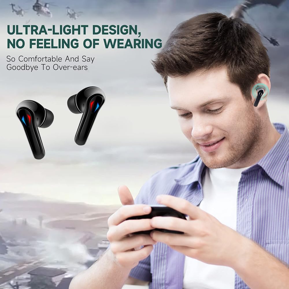 【Ergonomic Design Ensures Long Wearing Comfort】 Ergonomic earbuds shape design and as low as 4.3 grams of the ultra-light earbuds, to ensure the comfort of long-time gameplay, you can say goodbye to the bulky over-ear headsets