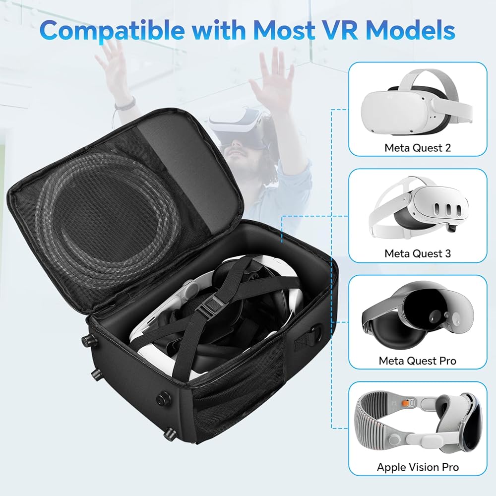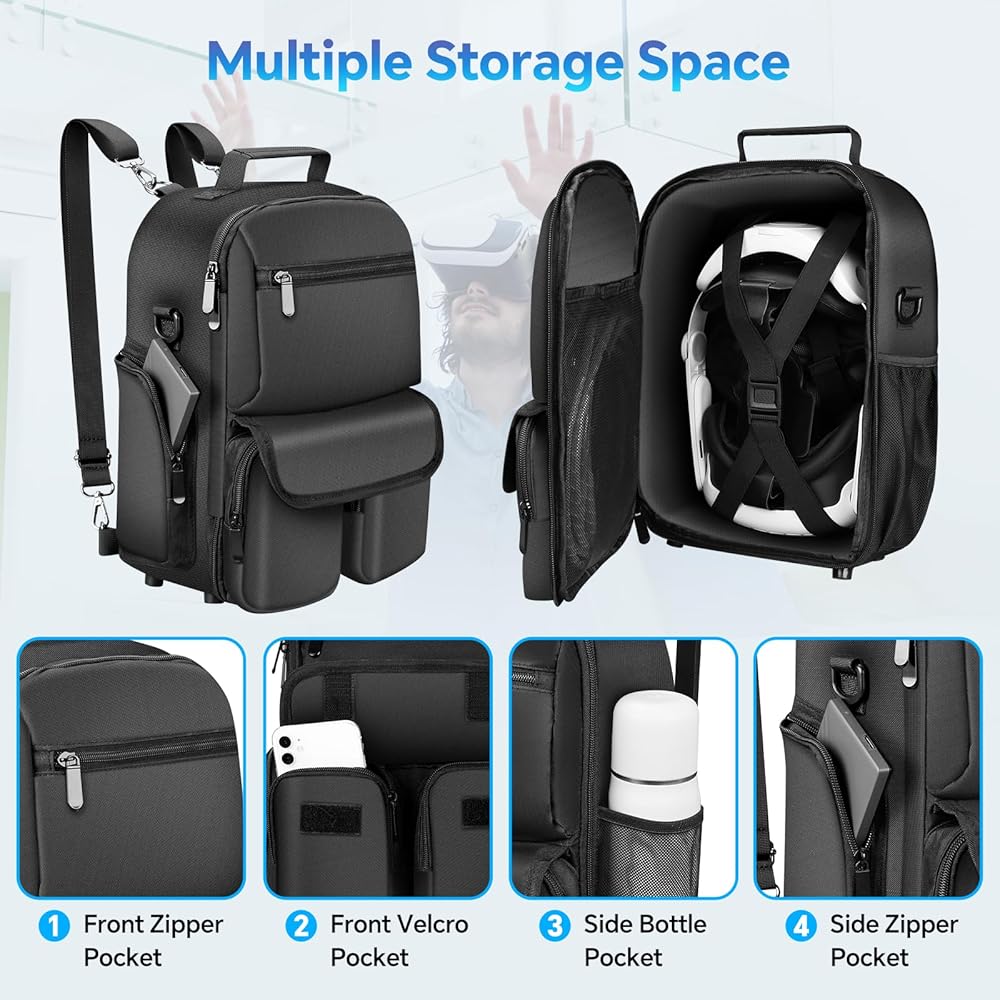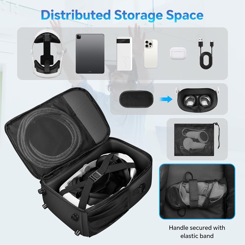 Case for Meta Quest 3/Oculus Quest 2/Quest Pro: Designed for organizing and protecting your Meta Quest 3/Oculus Quest 2/Quest Pro VR headset and accessories. Our bag compatible with official elite batteries, fits 99% of third party VR headstrap